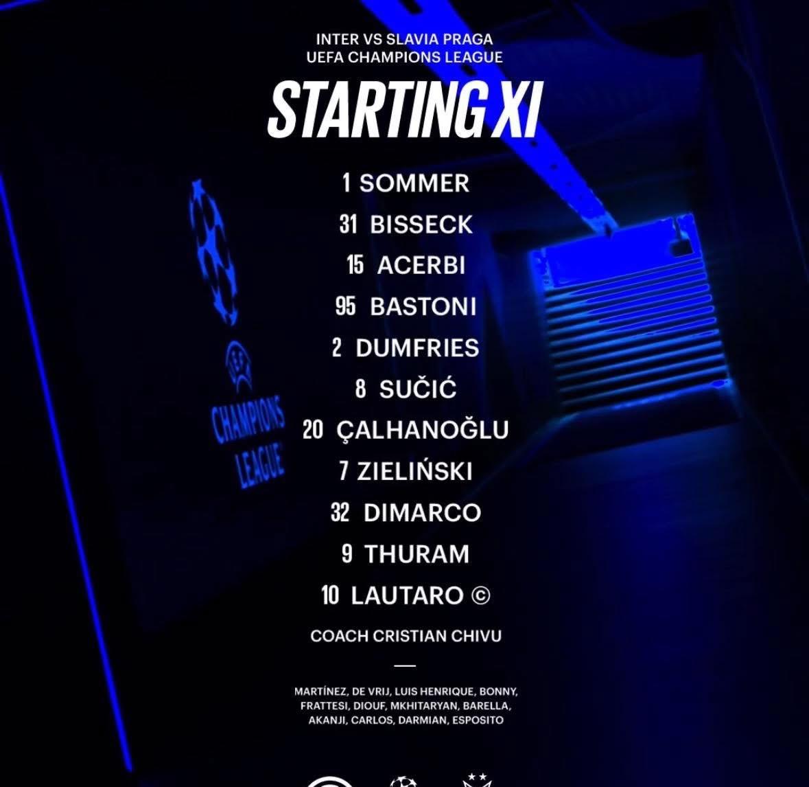 半场:国际米兰2:0布拉格斯拉维亚,奠定本场比赛胜利局面 先说说首发阵容,赛前所