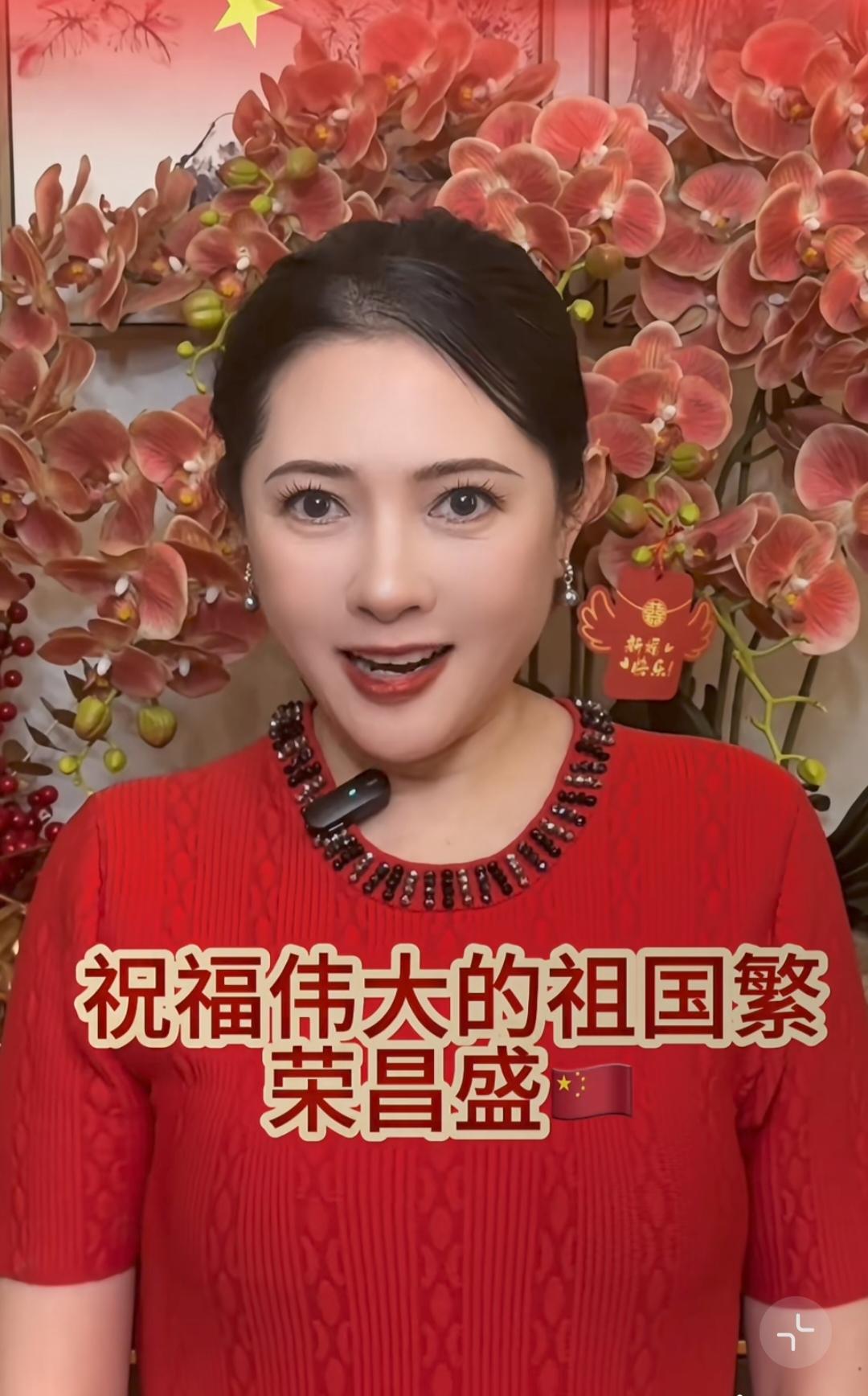 李丽珍在庆祝国庆,她穿了一身红,看着真喜庆!59岁的她,保养不错,看着还很年轻,