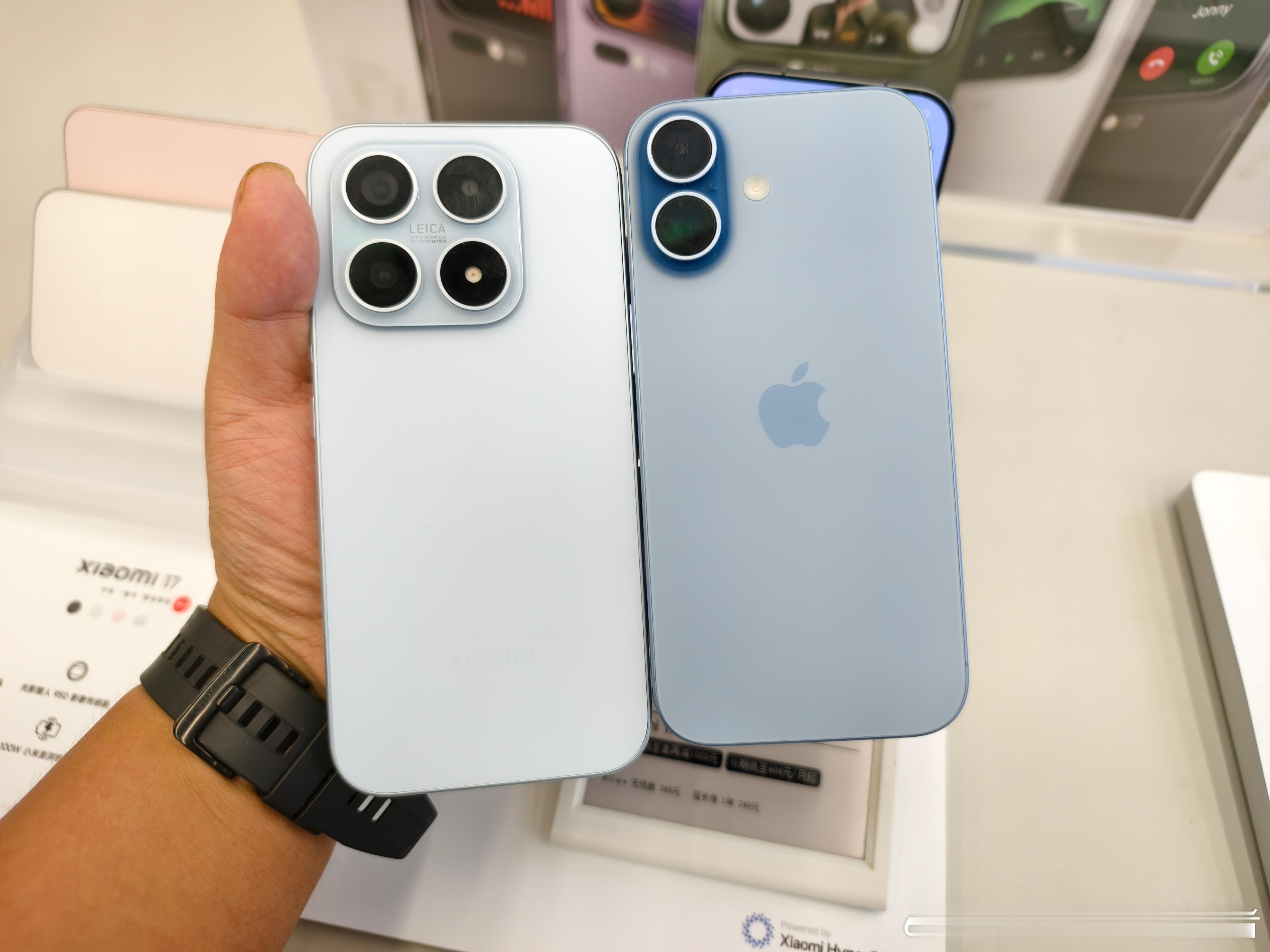 LH手机科技爱好者[超话] 小米17的续航能力一定比iPhone17强,这点我双手赞成。一个7000毫安电池,一个3000多毫安电池,差距很大。实际使用,iPhone掉电挺快的。小米17iPhone17续航对比