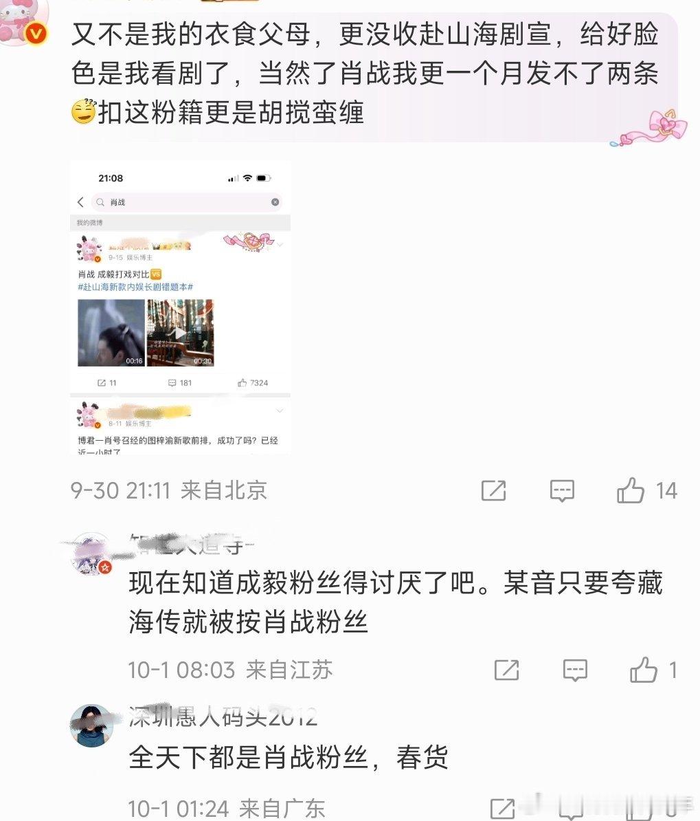 还给人家安了个粉籍,现在ie就是特别激愤的状态,yxh每天发那么多,哪能都知道谁家发生了啥!私信说一下就好了,上来就🐴,不在大v榜上发的红稿都是大家高兴一下,纯纯的没有收益,真别以为人家赚到了,真没有!