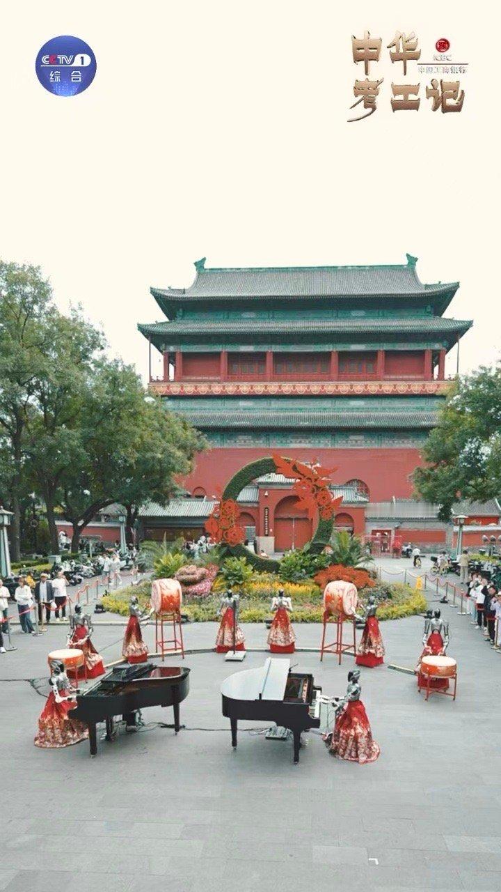 新时代工匠献给祖国最深情的赞歌 钟鼓楼前机器人乐队开演!钢琴机械手碰传统锣鼓,《歌唱祖国》里全是科技与匠心的爱国浪漫~