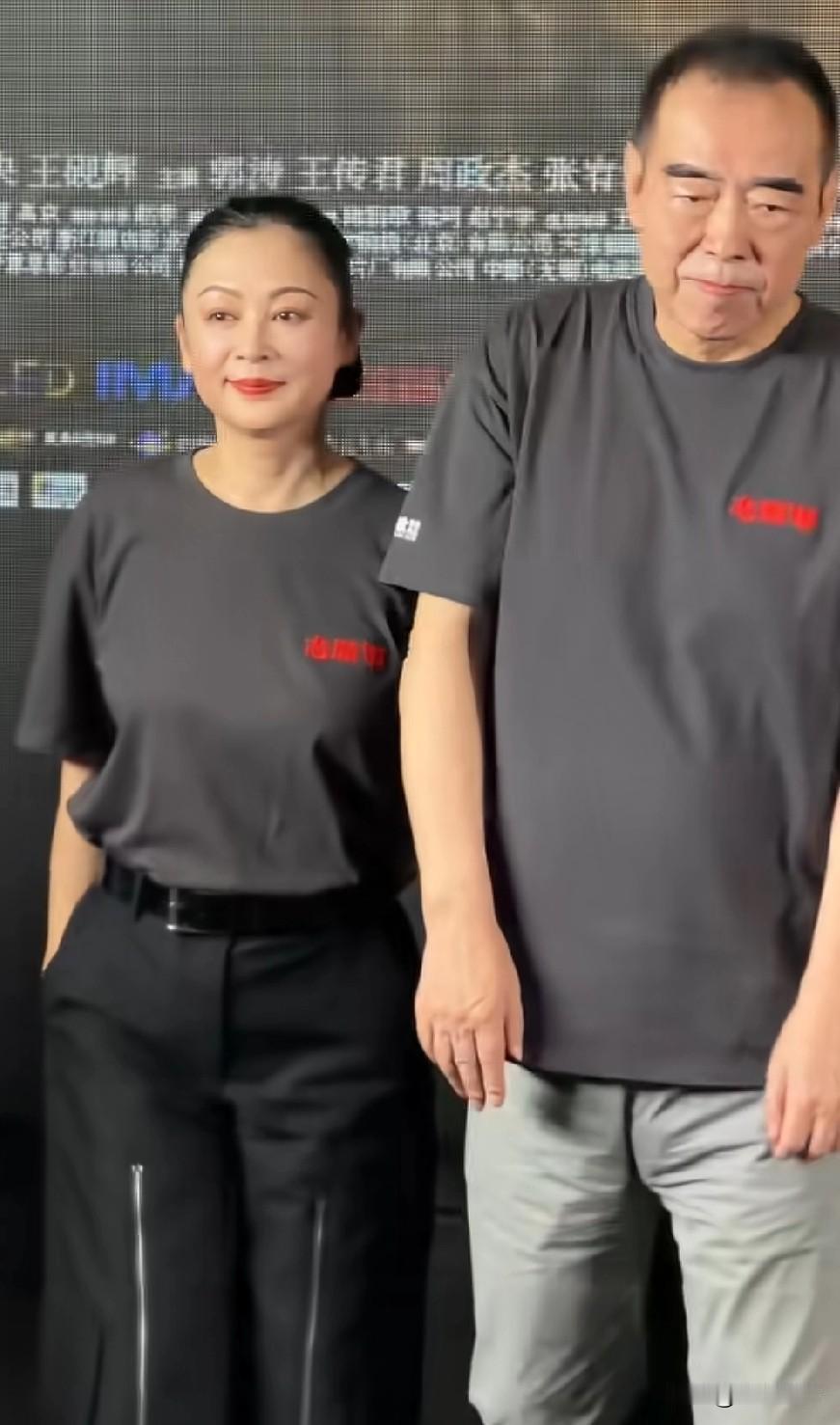 夫妻不是应该很自然的携手向前一起走吗?肢体语言好像说明了什么! 陈凯歌的胳膊并不