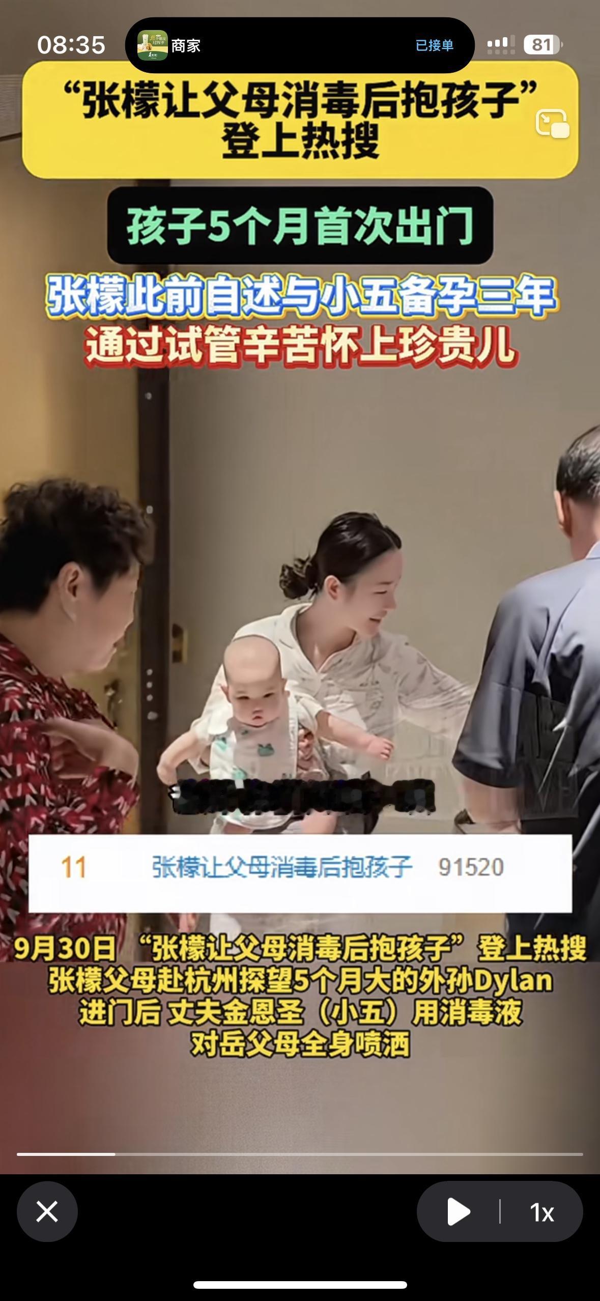 张檬太好笑了!嫌弃父母却不嫌弃狗 张檬父母去看望5个月的外孙 没想到门还没进去,张檬让父母全身消毒,让自己家的狗随便上床 她觉得自己试管辛苦怀孕生下的孩子,不想有一点闪失,让父母全身消毒后才能抱孩子。简直太夸张了越这样越没有抵抗力,免疫力下降,啥都不懂,以为对孩子好,其实越讲究越容易生病