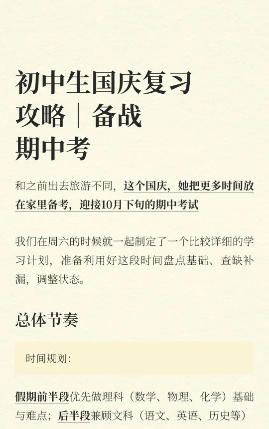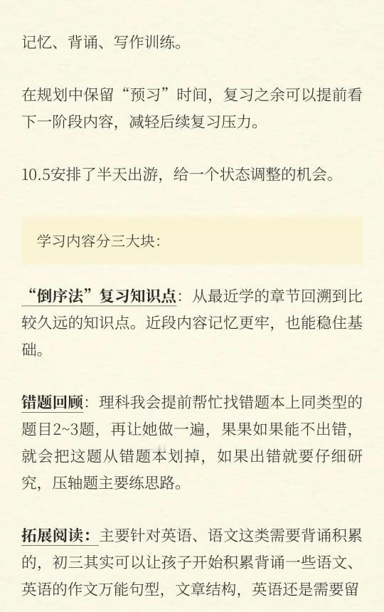 初中生国庆复习攻略|备战期中考 国庆期间,我和女儿一起制定了详细的学习计划 主要帮助她查缺补漏,调整状态,适应考试节奏 学习习惯 教育规划 中考复习 学习规划 初中学习方法 学习经验 我的学习进化论 快速提分 一轮复习