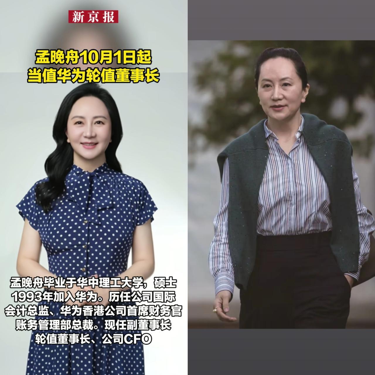 快讯!快讯!华为又有大动作! 孟晚舟再当轮值董事长,10月1日正式 接棒,这已