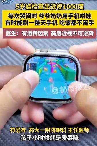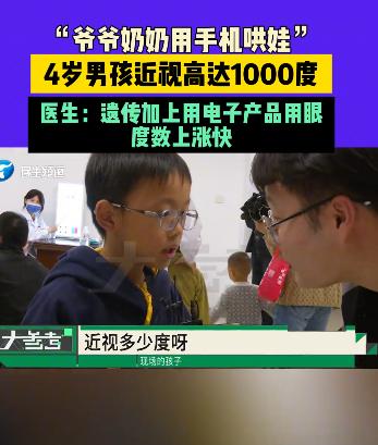 悲剧还是发生了!9月27日,河南郑州,一5岁男孩被父母带到医院检查视力,结果医生惊讶的发现孩子的视力近视高达1000度!原来孩子一直都是由爷爷奶奶带着的,而他们为了不让孩子苦恼,就一直让他玩手机,网友:老一辈带孩子还是不能太溺爱。 9月27日的郑州,郑大一附院眼科诊室里一片沉默。 验光师拿着检查单的手微微发颤,反复核对后才轻声开口。 孩子双眼近视快1000度,眼轴26.5毫米,比同龄孩子正常数值多出4毫米还多。 这话让5岁男孩乐乐的妈妈瞬间红了眼眶,她自己400度的近视已经困扰半生,却没想到年幼的儿子要承受更沉重的视力负担。 这张薄薄的验光单,藏着千万隔代带娃家庭的共同困境。 看似是手机哄娃引发的个案,实则暴露出儿童视力保护中家庭责任、科学认知与时代环境的多重矛盾。 乐乐的视力问题并非突然出现。 从3岁起,他就跟着爷爷奶奶在老家生活,父母在市区打工,每天早出晚归,周末常加班,一个月顶多能回家两三趟,平时只能靠视频联系。 老两口年过六旬,爷爷有腰疼的老毛病,奶奶腿也不利索,根本追不上爱跑爱闹的乐乐。 每次孩子哭闹着要出门,他们就只好把手机塞过去,看会儿动画片,别乱跑摔着。 一开始孩子看半小时就腻了,可动画片会自动连播,渐渐地,乐乐盯着屏幕就挪不开眼。 爷爷奶奶发现这招“屡试不爽”,孩子抱着手机能安静一下午,他们正好能歇口气。 久而久之,乐乐养成了睁眼要手机、吃饭看手机、睡前还得看一小时的习惯,有时甚至能刷一整天。 看电视时,他非要贴到屏幕上才肯罢休,这些异常在老人眼里竟成了“孩子眼睛尖”的表现。 父母在视频里偶尔看到孩子拿着手机,也只是随口说句“别看太久”就匆匆挂线。 老人带娃已经够累了,哪好意思再多挑剔。 乐乐妈妈后来懊悔地说,她从没教过老人怎么控制屏幕时间,也没注意到孩子眯眼、皱眉头的预警信号。 直到这次回家发现孩子连远处的路标都看不清,才慌忙带他去检查。 郑大一附院的医生解释,乐乐的高度近视是遗传与后天习惯共同作用的结果。 乐乐父母都有四五百度近视,让孩子天生就有近视易感性,而每天超6小时的近距离用眼,成了视力恶化的“加速器”。 最后,配镜师为乐乐试了十几副镜架,最后选了最轻的树脂材质,但镜片还是厚得像啤酒瓶底,轻轻架在鼻梁上就往下滑。 孩子戴上后头晕得东倒西歪,试戴三天,耳朵后面就磨出了两道红印,哭着喊“不要戴眼镜”。 爷爷奶奶得知结果后,自责得好几天吃不下饭。 奶奶坐在沙发上抹着眼泪,早知道伤眼睛,就算天天抱着他走,也不该给手机。 爷爷攥着手机的指节发白,转身就扔进了抽屉最深处,后来见着孩子就念叨,再看手机,眼睛就真瞎了。 更让人揪心的是,乐乐的高度近视几乎不可逆。 医生明确表示,激光手术要等18岁后度数稳定才能做,而且只能矫正度数,无法改变眼轴拉长的状态。 当手机成为“电子保姆”,当忙碌替代了陪伴,受损的不仅是孩子的视力,更是他们的未来。 儿童的视力健康没有后悔药,每一位家长都该明白:工作再忙,也别忽视孩子的用眼细节;距离再远,也要把科学育儿的方法传递给家人。 用提前预防代替事后补救,用有效陪伴代替手机哄娃,才能让更多孩子远离“小眼镜”的困扰,守护好他们清晰的视界。 信息来源:人民日报社2025-09-29发布:5岁娃近视1000度!家里人这个习惯害了他