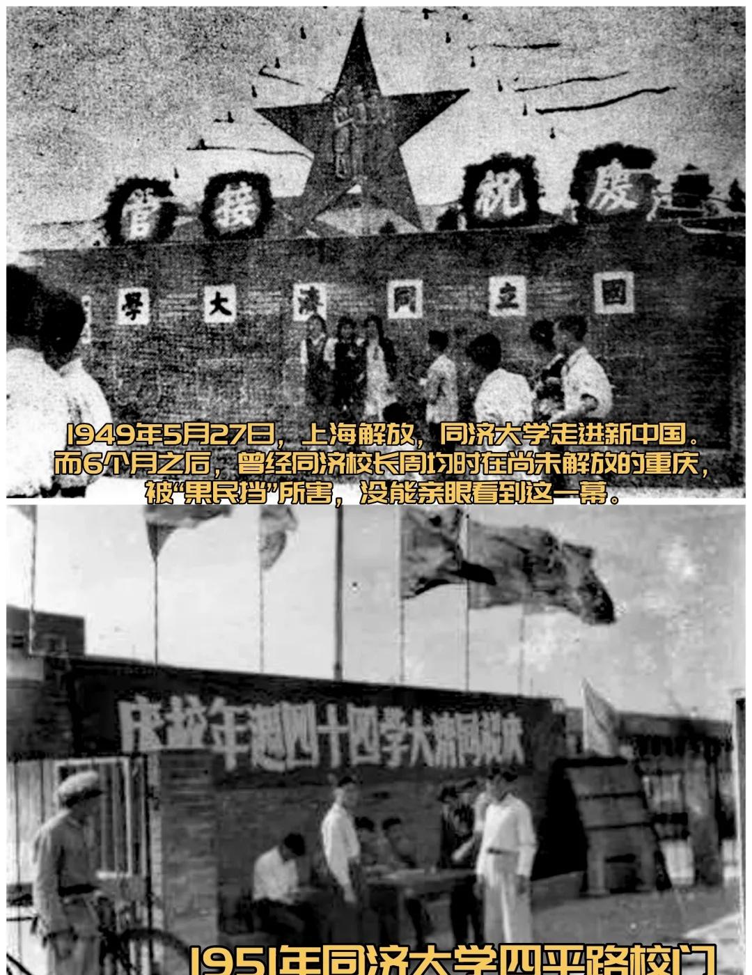 以防你没见过同济大学校门以前长啥样 从昔日德文医学堂到如今的同济大学, 从梧桐区到吴淞口, 从战时李庄到重归沪上, 从其美路到四平路,从旧中国到新中国。 凭一口气点一盏灯,建一所校开一扇门。 在时代的巨变与家国的复兴中,同济的校门,在经历了近半个世纪的辗转反侧,颠簸动荡之后, 终究稳稳地立在了四平路的身旁,自信地开向了寰宇四海。 念念不忘,必有回响。 当同济与上海,在历经千难万难,终于迎来1949年的崭新篇章时,这一刻, 花径不曾缘客扫,蓬门今始为君开。 曾经伤痕累累断壁残垣,盛开出今日欢度国庆的红色喜悦!! 同济大学 同济建筑 老照片 上海 同济 上海citywalk 老上海 建筑 建筑设计