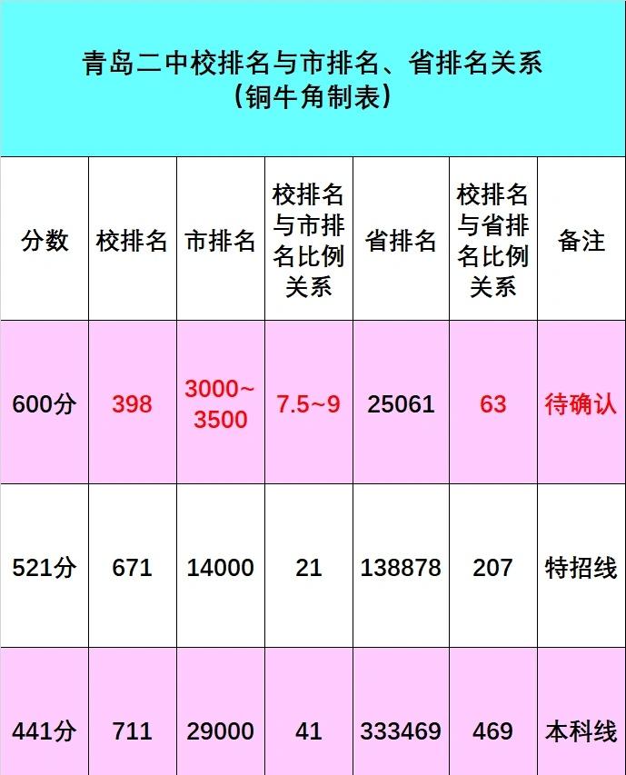 青岛二中校排名与市排名省排名的换算 青岛二中校排名与市排名省排名的换算