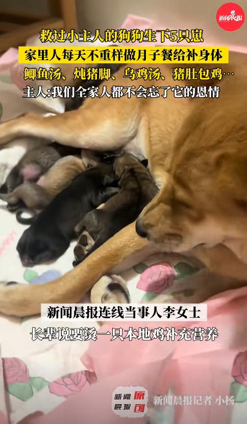 “万物皆有灵!”9月4日,广西贺州,一只家里的土狗在生下了5只小狗后,竟被主人亲自用手喂“月子餐”,顿顿吃乌鸡汤、猪脚汤等等大补身体,网友得知原因后怒赞:这只狗吃什么都是它应得的! 一位女主人正蹲在地上,亲手把碗里的汤喂给一只刚生完崽的土狗,这可不是普通的一碗汤,而是专门炖的乌鸡汤、猪脚汤,妥妥的人类“月子餐”标准。 要知道,在大多数人的观念里,中华田园犬的饭碗里通常是剩饭剩菜,这种全国都罕见的待遇,让人不禁想问,这只狗到底做了什么? 时间得拉回到今年年初。 那天,天气正好,一家人带着孩子到河边散心,大人们在不远处聊天,两个孩子在河边追逐打闹。 谁知意外就在一瞬间发生,小儿子因为脚下一滑,整个人跌进了深水区,只听“扑通”一声,他很快被水流卷走,瞬间没了人影。 大人们先是愣住,随即慌了神,呼喊着孩子的名字,但哪里还看得清楚他的位置,岸边一片混乱,情况万分危急。 就在所有人几近绝望之时,家里养的那只土狗猛地冲了出去,它平日里憨厚老实,从没离开过院子太远,可这一刻,却像是被什么点燃了本能,它几乎不带犹豫,直接一头扎进河水里。 冰冷的河水溅起巨大的水花,土狗的身体瞬间被打湿,但它奋力扑腾着,顺着孩子消失的方向游去。 凭着敏锐的嗅觉和直觉,它很快找到了在水中拼命挣扎的小主人,孩子的小手胡乱拍打着水面,眼看就要沉下去。 土狗眼神一狠,猛地咬住了孩子的衣服。孩子的身体被猛然一拽,露出水面,呛得直咳嗽,土狗并没有松口,而是用尽全身的力气,拼命往岸边游。 河水湍急,几次差点把它们冲走,但它硬是咬紧牙关,不肯放弃。 岸上的大人们急得直跺脚,一边大声呼喊,一边沿着河边跑,眼看着土狗带着孩子一点点靠近,他们心都提到了嗓子眼。 终于,在最后一扑之下,土狗把小主人拖拽上了岸,孩子跌坐在地上,满脸是水,呛得直哭,却终于活了过来。 大人们冲上前,抱住孩子,泪水和雨点般的亲吻落在他的脸上,与此同时,那只土狗已经累得瘫倒在草地上,嘴角还挂着水渍,却依旧警惕地盯着河水,好像还在担心小主人会再次掉下去。 从那天起,这家人就下定决心,这辈子都要好好待它。 自从那次救命之后,这只土狗在家里的地位发生了翻天覆地的变化。它不再只是院子里看门护院的宠物,而是真正成了这个家庭的一员。 久而久之,大家甚至习惯说:“它不是狗,是咱家最懂事的孩子。” 前段时间,小狗怀孕了,后来顺利生下了几只毛茸茸的小奶狗。全家都兴奋坏了,尤其是孩子们,天天围着小狗转。 女主人看着它瘦了一圈的身体,心疼得直掉眼泪,心里暗暗下定决心:这次一定要好好补偿它。 于是,小狗在家里的“待遇”又升级了,女主人直接腾出了一间小屋,把地铺上干净柔软的毛毯,再用厚厚的棉被围好,免得小狗着凉。 她每天给小狗熬鸡汤、炖排骨,让它“坐月子”时能补足营养,家里人都笑,说她对待小狗的样子,简直比照顾亲闺女生孩子还仔细。 女主人却一本正经地回道:“它可是救过咱家命的恩人,这次生宝宝,我得按照人坐月子的标准来伺候它。” 小主人过生日的时候,小狗也陪着小主人一起看,一家人非常的其乐融融。 这事儿传开后,网友们也是一片叫好。大家都觉得,这只狗完全配得上这一切。它用奋不顾身的忠诚,换来了主人一家至高无上的尊荣。 这根本不是单方面的宠爱,而是一场跨越物种、以命换情的双向奔赴,每一口鸡汤,都是它应得的勋章。 信息来源:新闻晨报