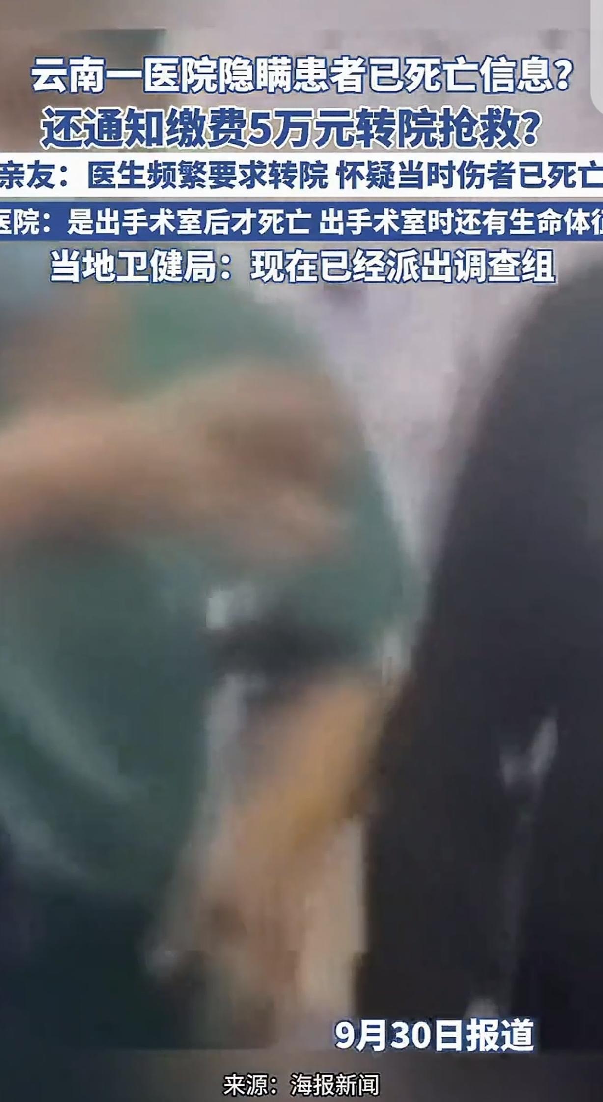 云南,一男子在工地意外受伤,可医院却隐瞒男子已死亡的消息,还通知缴费50000元