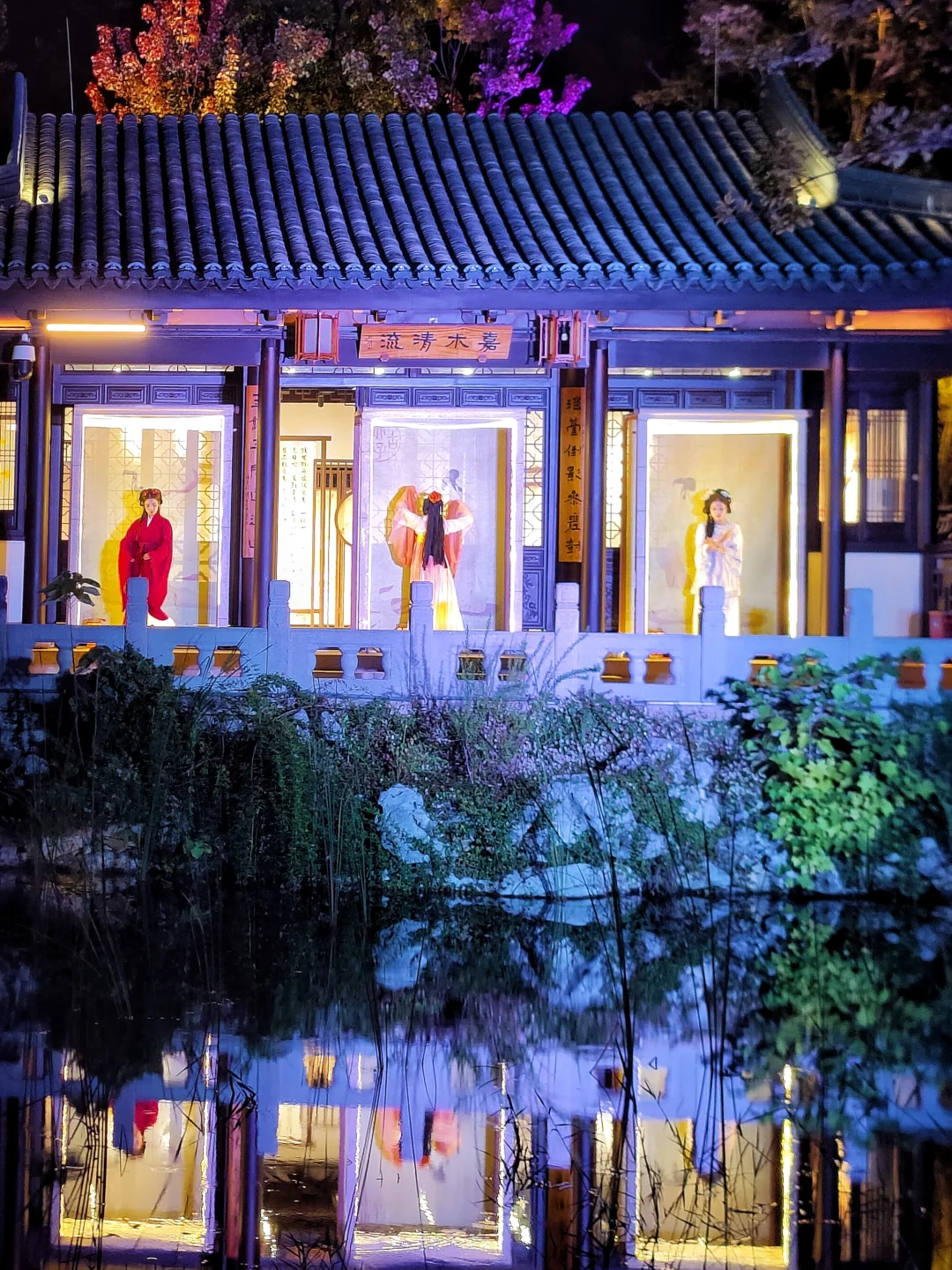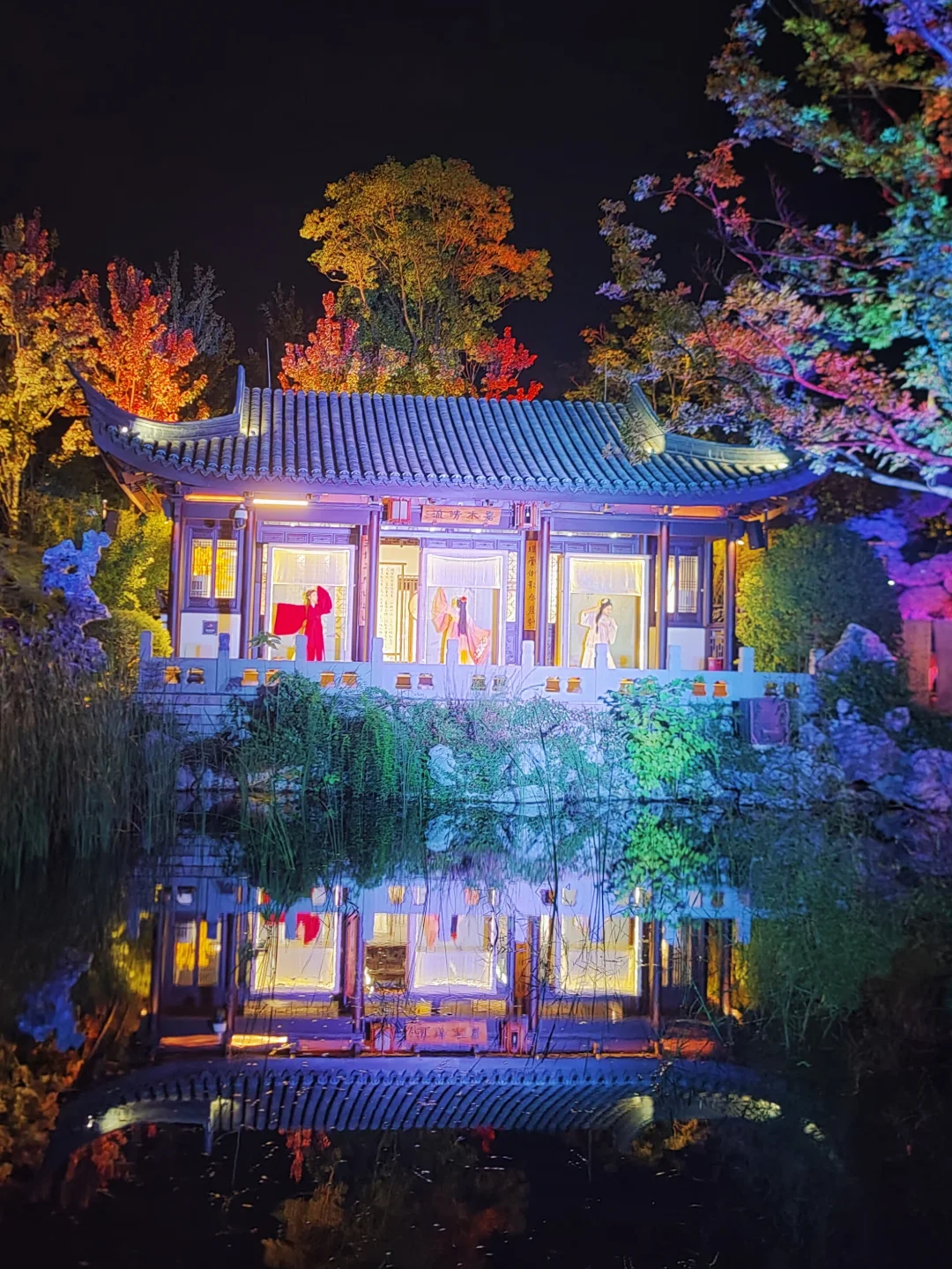 💥夜间路线:晚上7点半前往南京园附近欣赏水幕全息秀“金陵寻梦”,感受光影投射在水面上的震撼效果。