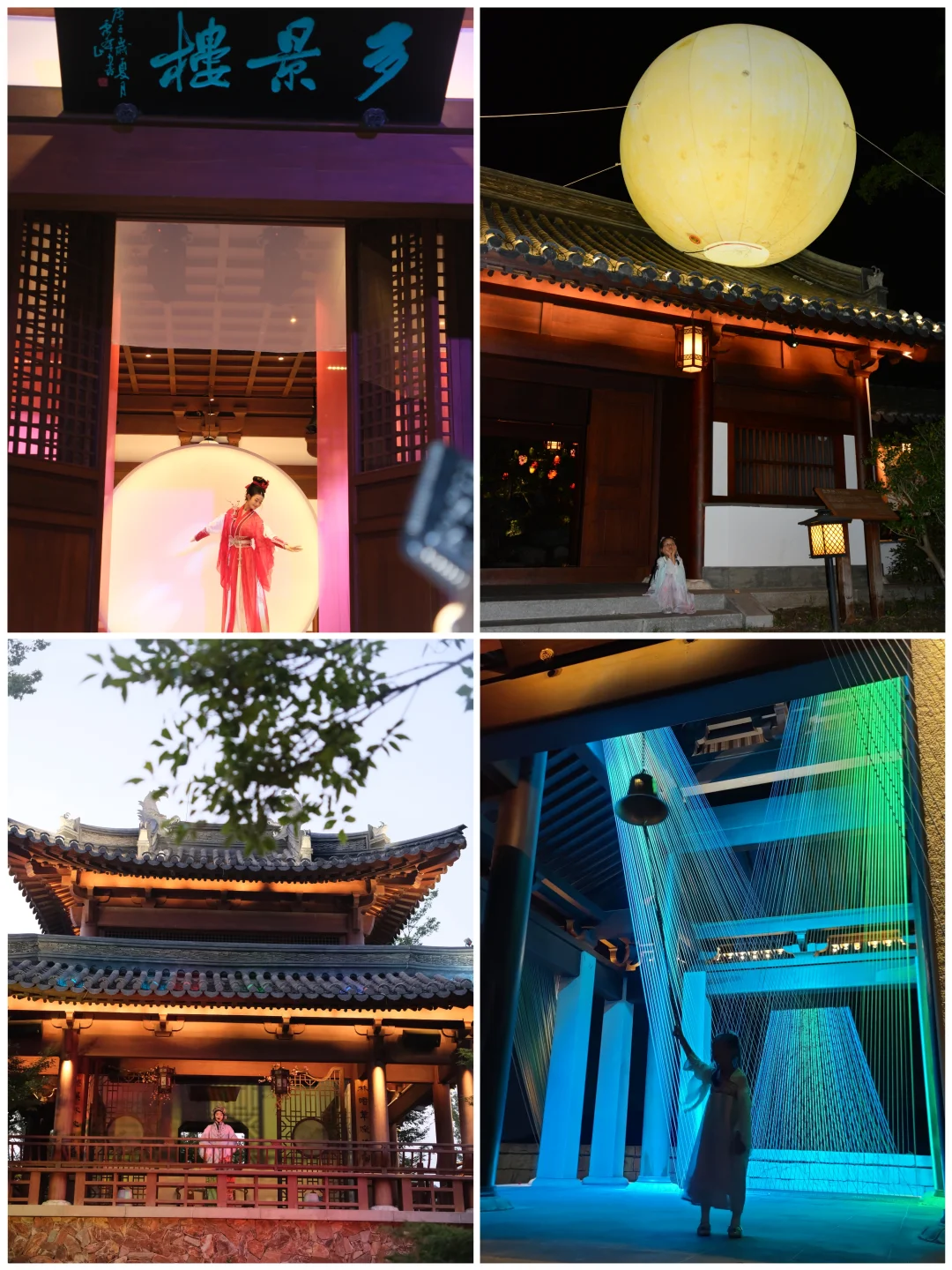 国庆期间,入园别忘了领取苏韵十三园体验攻略卡和一袋苏韵通宝,可以偶遇身着古装的npc,夜晚欣赏游园惊梦等演出,50m千里江山主题夜游,园内还有10米高的中秋月亮打卡点,南京园沉浸式全息投影。