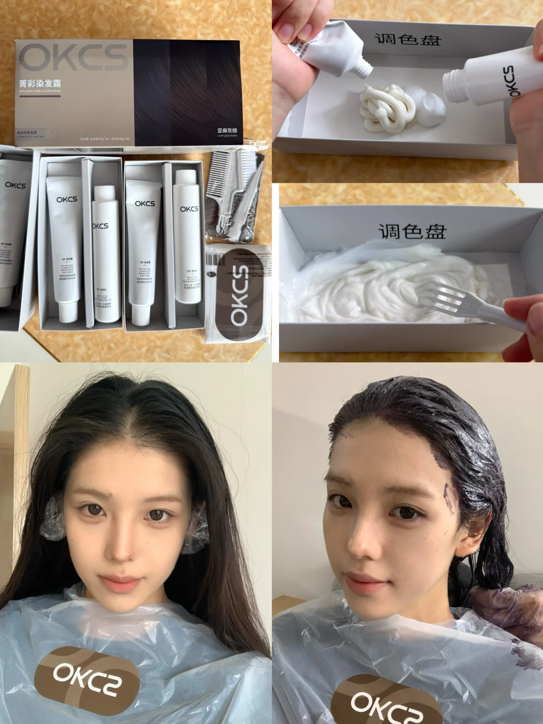 okcs染发膏okcs染发膏亚麻灰棕在家染发染发膏推荐秋冬发色许妍发色