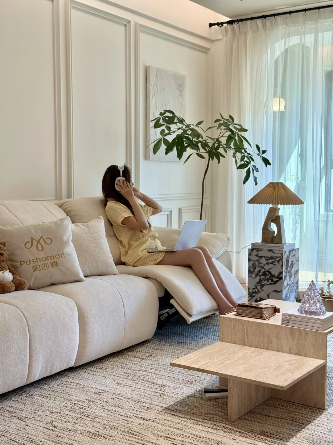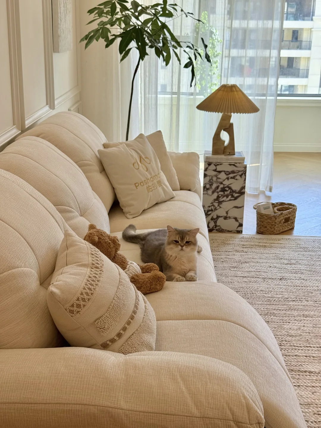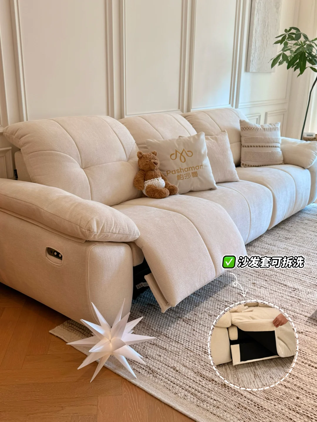 🔆沙发直接选帕沙曼抱抱熊功能沙发,奶白色耐脏又百搭,和我的客厅适配度超高,靠背和扶手都是软乎乎的,像裹在棉花里一样,累了还能把脚托打开躺着,办公室就调整成半躺模式比普通沙发实用太多!很适合适合懒人,沙发旁自带usb孔,实现一边追剧一边玩手机~沙发套可以拆洗,不怕小猫打滚弄脏啦!