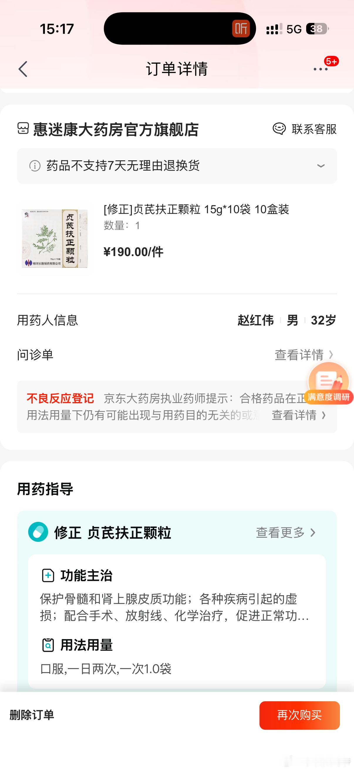 家人在京东店铺:惠迷康大药房官方旗舰店,购买贞芪扶正颗粒药品,由于常年吃这种药品知道有含糖型和无糖型两种,家里人一直购买的含糖型,但是内部商品包的是无糖型!