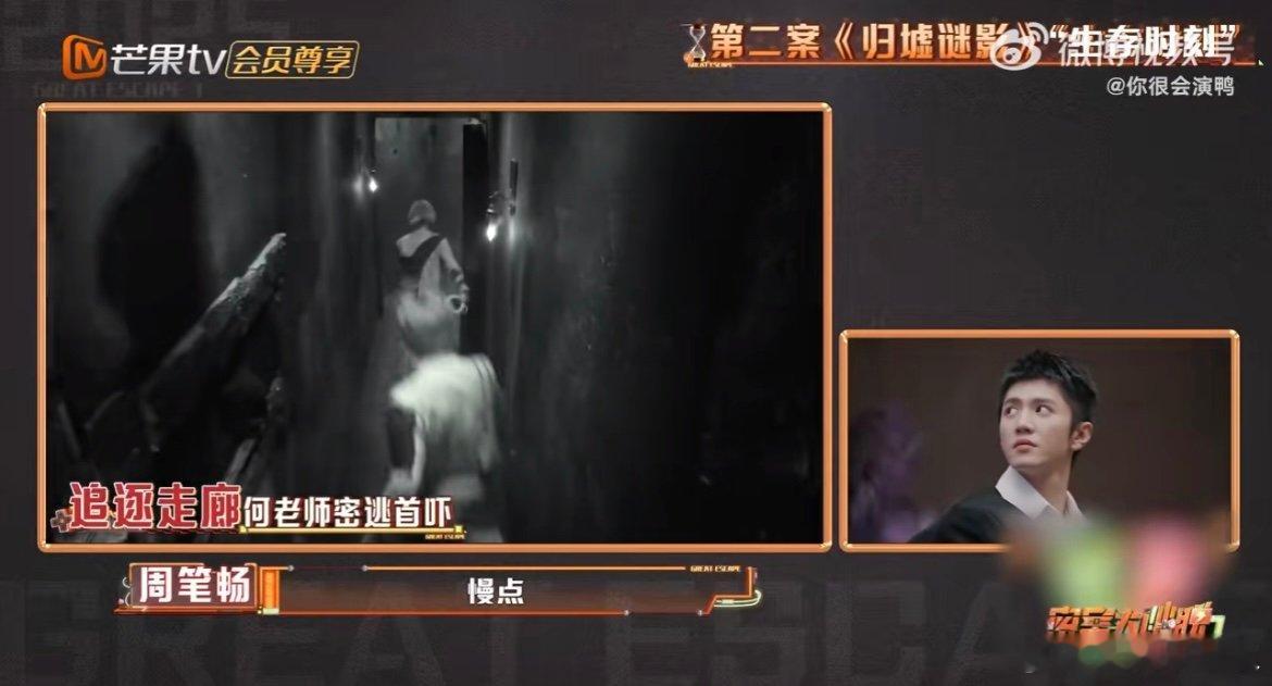 何老师第一次在密逃被吓到 这期密逃直接封神!何老师破功的瞬间,让全场嘉宾都忘了恐惧,大张伟拍着大腿笑,周笔畅还调侃“终于抓到你的小弱点了”,我已经开始循环这段片段了!