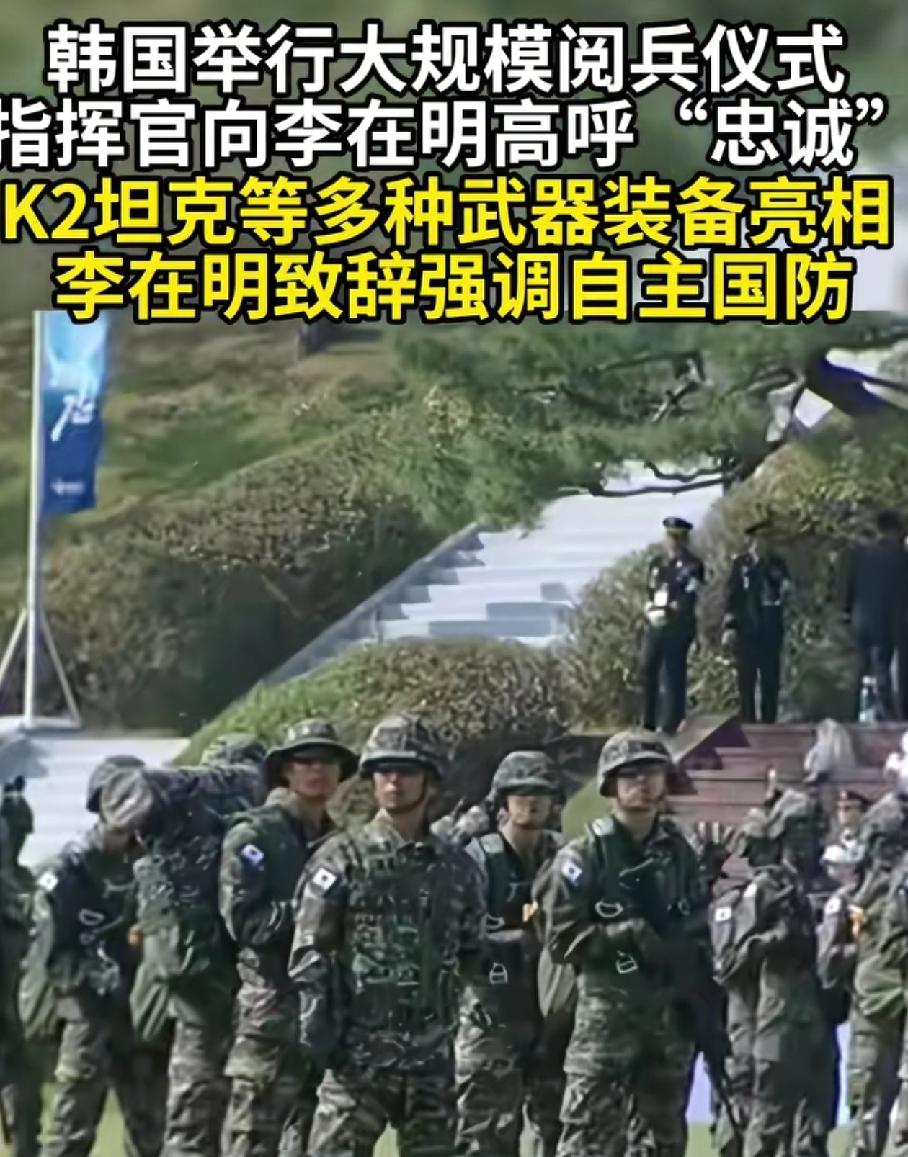 我的天!18秒的大规模阅兵式,差点闪了我的腰,能不能再夸张一点? 大开眼界,这还真是大规模阅兵,和我们校园军训一样,就是多了辆K2 现在的新闻真有意思,偌大个标题,南棒子举行大规模阅兵,点进去看看,有多大,结果最长的新闻18秒,李在明占了12秒,剩下的人和装备都是快闪,一共6秒…… 差点闪了腰,还给我弄的心里落差极大,这算不算标题党? 再说,这算大规模,过两天北韩的阅兵式你们准备怎么报道? 军事