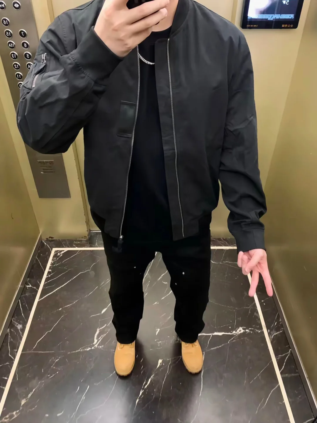 我说工装穿搭是最适配高壮男生的穿搭风格之一应该没人反驳吧🤔 早秋搭配首选这种自带CORTIS美式复古风格的MA1飞行员夹克绝对不会出错,上身显壮显肩宽短款版型上身自带腿长特效😱 内搭选择纯黑色基础款短袖T又酷又帅上身还显瘦遮肉,下身选择这种上身只显裤型不显腿型的黑色直筒工装伐木裤搭配大黄靴Allblack穿搭➕工装硬汉风直接拉满👀 我身高190cm体重97kg跟我身型差不多的兄弟们可以直接抄作业💯