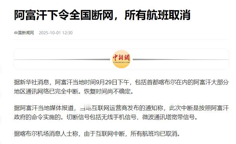 特朗普傻眼了,阿富汗塔利班直接先下手为强了!从9月29日下午起,阿富汗当局下令,完全切断阿富汗包括首都喀布尔在内的阿富汗大部分地区通讯网络,不仅如此,阿富汗已实施全国停电24小时以上。 塔利班这手可不是临时起意,切断通讯早就是他们的熟门绝技了。2021 年拿下喀布尔那会儿,就精准切断过潘杰希尔省的互联网,就为了阻止反塔利班武装在社交平台发声,这次干脆把范围扩大到包括喀布尔在内的大部分地区,无线信号、宽带网络全给掐了,连机场都因为没网取消了所有航班。 停电更是他们的老办法,2019 年就在巴格兰省炸了两座高压输电塔,一下子让 12 个省陷入黑暗,如今直接升级成全国性停电,而且一停就是 24 小时以上,把卡勒德・胡塞尼笔下 “灿烂千阳” 的喀布尔夜景彻底变成了黑灯瞎火的孤城。 这波操作戳中的全是阿富汗的软肋,要知道这个国家 70% 以上的 electricity 都得从乌兹别克斯坦进口,本土电力设施脆弱得不堪一击。 喀布尔东部的工业园区首当其冲,工厂机器停转,本来就不景气的经济雪上加霜;做冰激凌生意的哈利利只能在家待业,因为没钱买发电机,机器根本转不起来;还有独自带三个孩子的莱拉,夜里只能摸黑盼着丈夫回来,偶尔去邻居家蹭点太阳能发电的光亮。 塔利班显然算准了,这种民生层面的 “休克疗法” 既能快速压制内部异动,又能给外部势力一个明确信号 —— 阿富汗的节奏得由他们说了算。 最让特朗普难堪的是,这记重拳正好打在他的矛盾之处。当年他力推与塔利班签《多哈协议》,把撤军说成 “符合美国利益的正确选择”,为了兑现竞选承诺硬是把美军从阿富汗拽了出来,如今却翻脸要重返基地,还嘴硬说自己当初计划 “保留小规模驻军”,这话连美国前国防官员都不信,直言收回基地得派数万人,成本高风险大,根本没什么军事优势。 塔利班显然把他的心思摸得透透的,知道他想靠 “夺回基地” 刷存在感,干脆用断网断电封死通道 —— 没有通讯保障,航班都飞不进去,就算真派美军过来,后勤补给都成问题,更别提掌控基地周边区域了。 更有意思的是,特朗普跟塔利班的打交道史早就充满了变数。2019 年他突然在推特上说谈判 “已死”,理由是塔利班袭击造成美军伤亡,可转头又签了撤军协议;现在又想重拾关系,却连直接对话都没搭上线。 塔利班这回根本不跟他废话,用实际行动表明态度:当年你要撤军,我们配合了;现在你想回来,没门。断网相当于切断了外界窥探局势的窗口,停电则展现了他们掌控关键资源的能力,这比任何谈判表态都更有杀伤力。 要知道美军 2021 年撤离时,可是把 77 平方公里的巴格拉姆空军基地拱手让人,如今想再拿回来堪比登天。塔利班偏偏选在这个时候搞 “通讯电力双杀”,就是要让特朗普的高调表态变成笑话 —— 你不是想造势吗?我先把舞台拆了。 而且这招还能顺带解决内部问题,就像 2021 年断潘杰希尔网压制抵抗力量一样,全国断网能有效阻止反对声音串联,毕竟在信息真空里,任何异动都难成气候。 特朗普大概没料到,自己当年一手促成的撤军,反倒让塔利班练出了这套 “先发制人” 的本事。现在通讯断了,停电还在持续,外界连准确的局势都摸不清,他那些 “收回基地” 的豪言壮语,只能变成没人接的空话。 这波操作下来,塔利班不仅巩固了内部掌控,还顺便给想回头的美国上了生动一课:阿富汗的游戏规则,早就不是外人能定的了。
