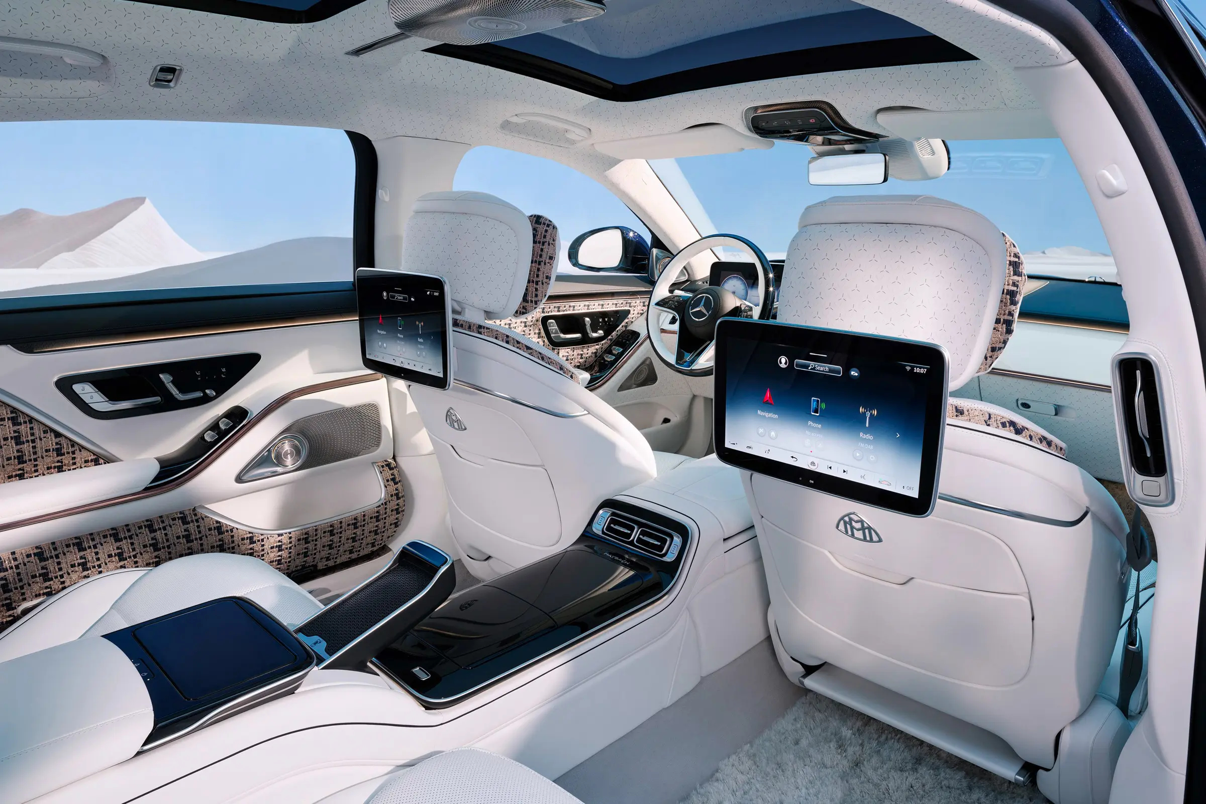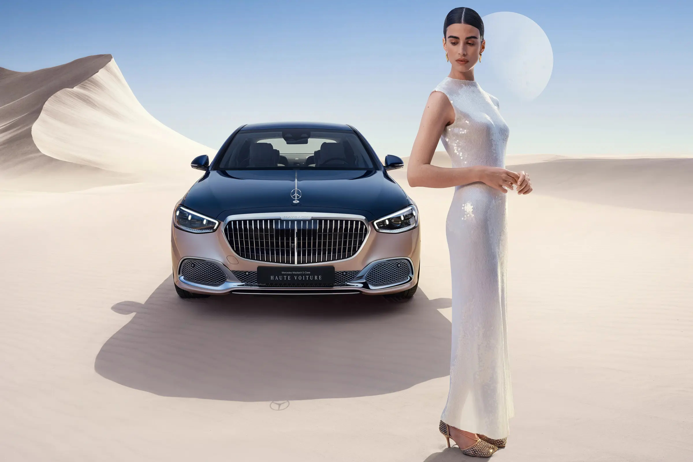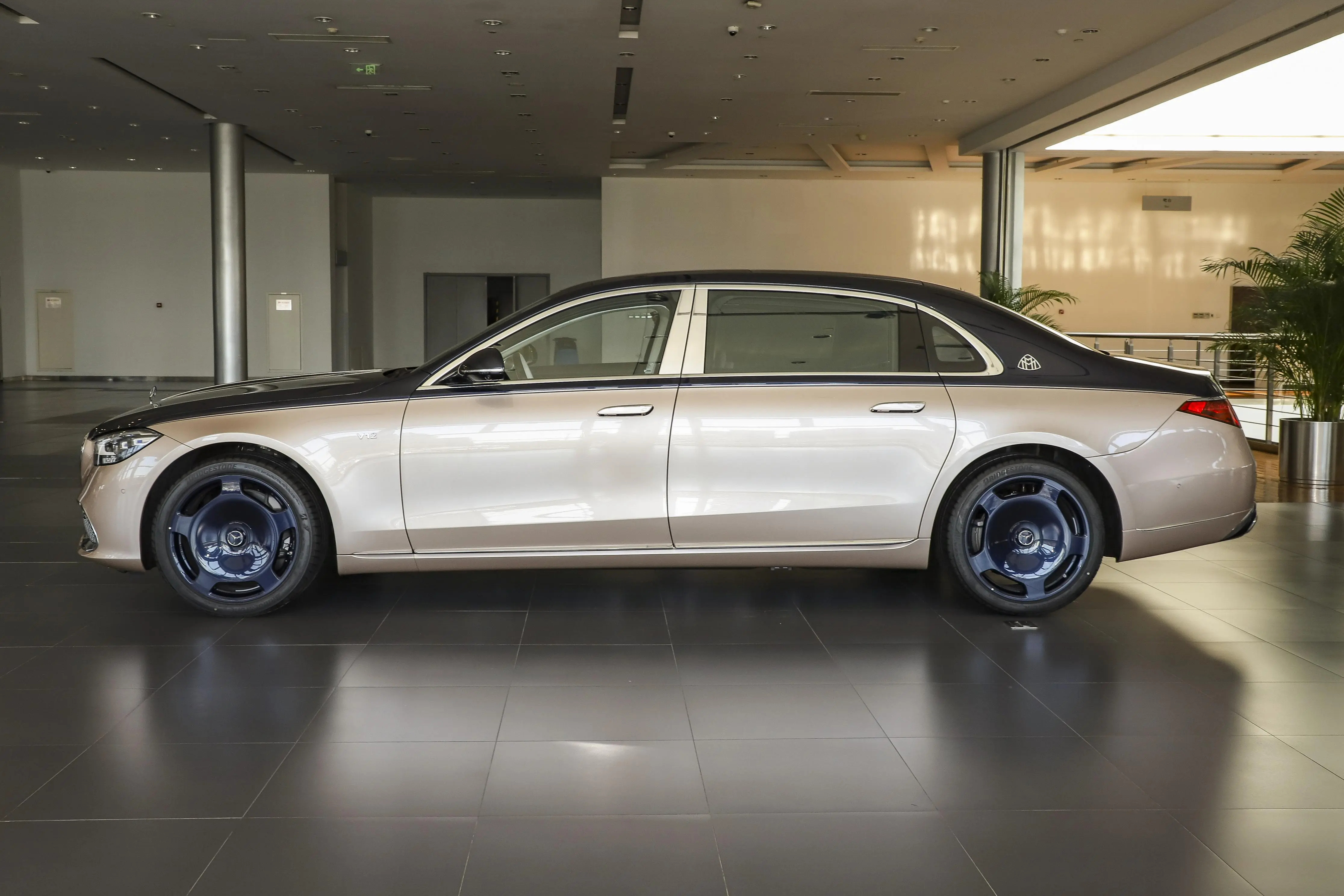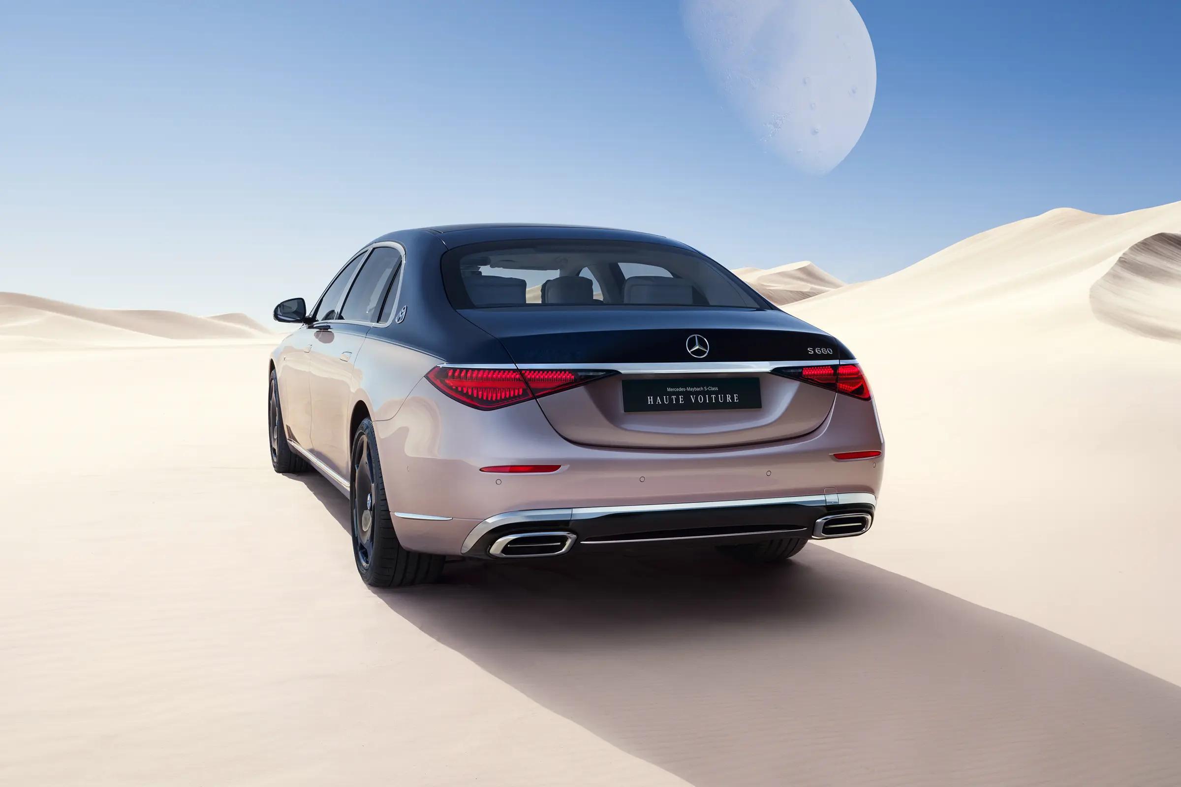 “梅赛德斯-迈巴赫S级Haute Voiture限量高定基于迈巴赫S 680 4MATIC车型打造,以展现出梅赛德斯-迈巴赫“至臻豪华”的品牌精髓。承袭Haute Voiture概念车的设计灵感,新车外观采用独特的双色漆面,车身上部及轮圈喷涂带金属光泽的海岳蓝色,车身下部则采用浅玫瑰金色。当车门开启时,梅赛德斯-奔驰或梅赛德斯-迈巴赫动态徽标将点亮登车区域,优雅迎宾入座。”