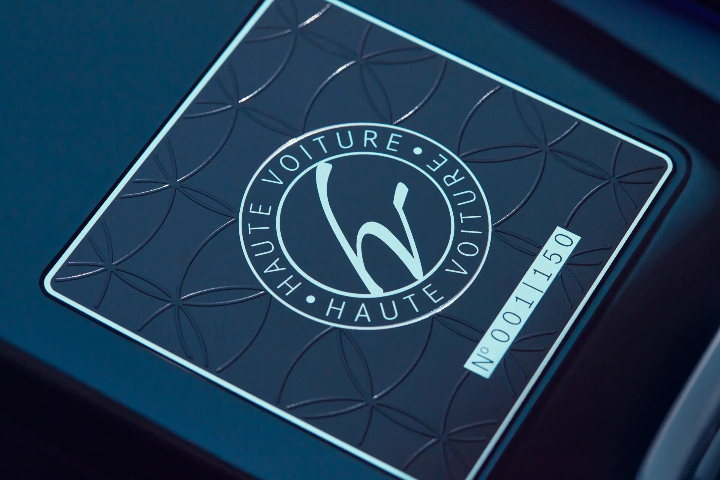 “后排空间则配有玫瑰金色笛形香槟杯及功能丰富的后排信息娱乐系统。Haute Voiture专属徽章镶嵌于后车门面板处,是这款限量版车型标志性特色之一。此外,该限量版前后排中控台采用蓝色皮革滚边,彰显精致美学。