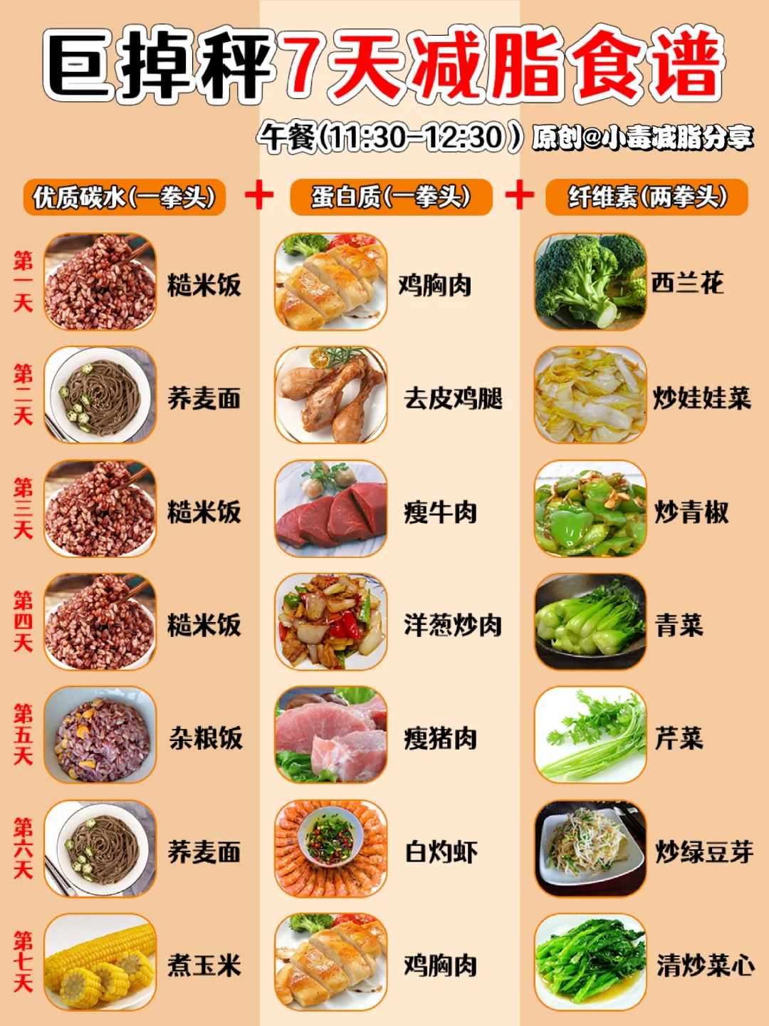 🔥巨掉秤7天减脂食谱,吃饱不长肉‼️