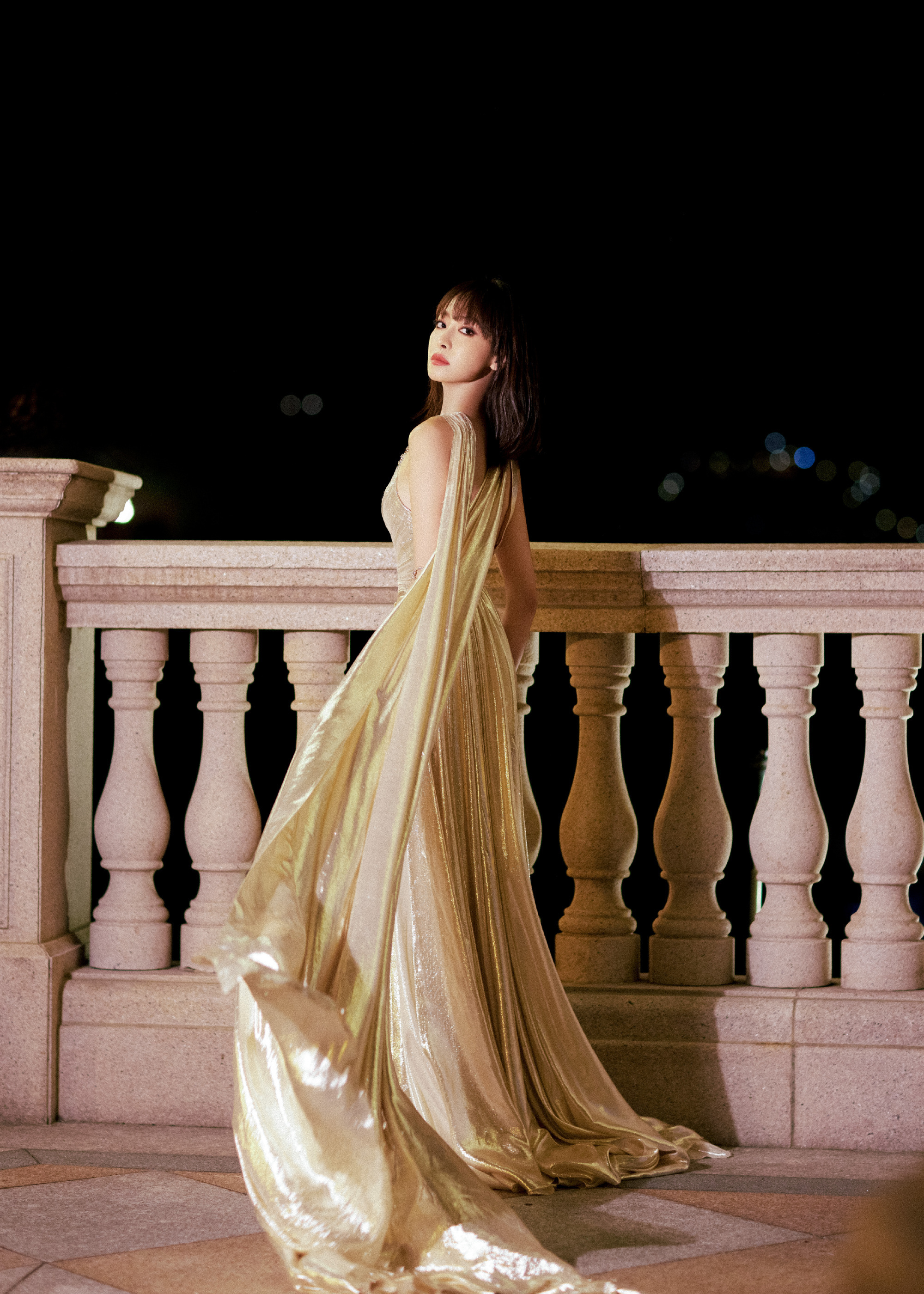 宋茜金色魅力,曼妙纱裙,金鹰女神就是不一样