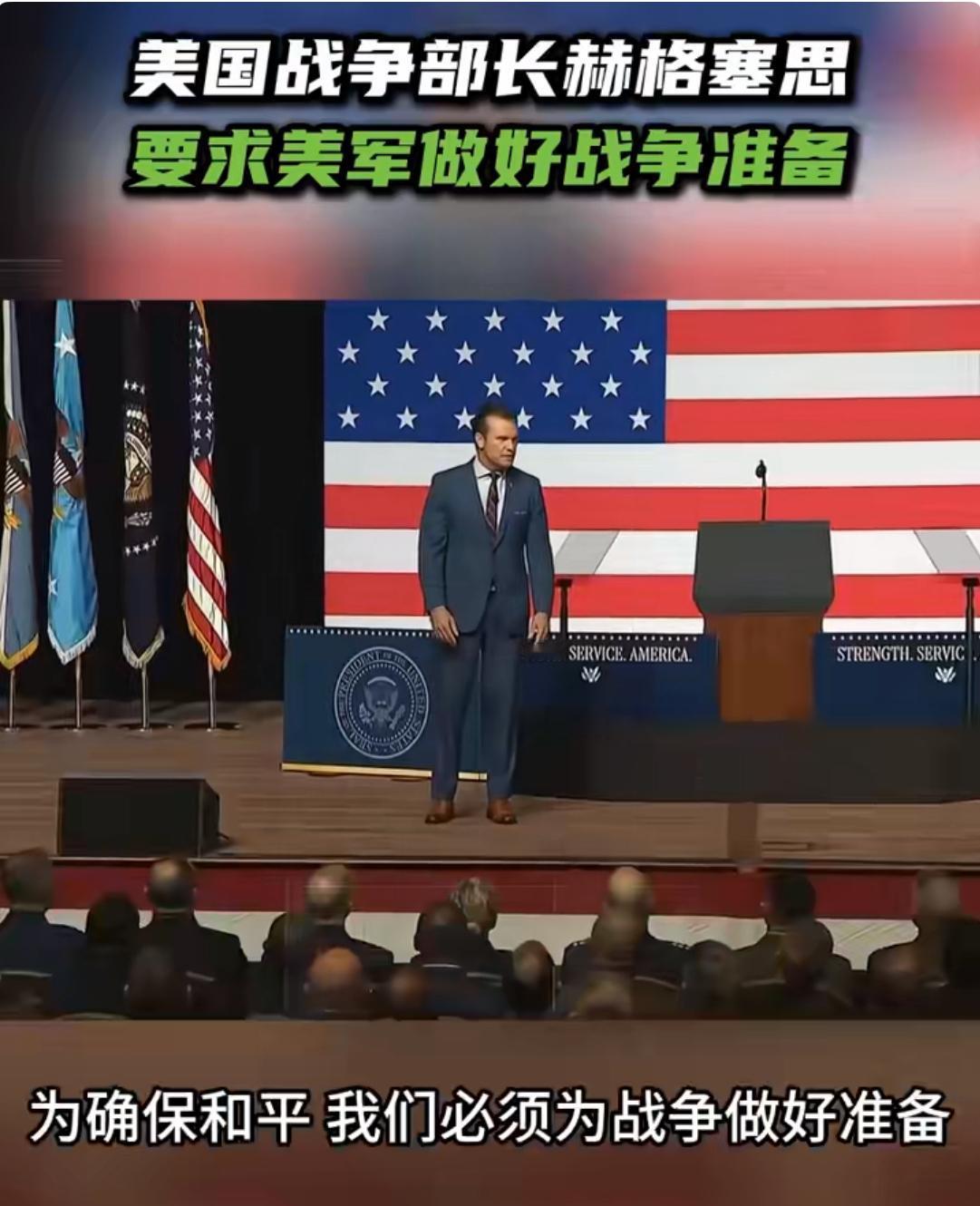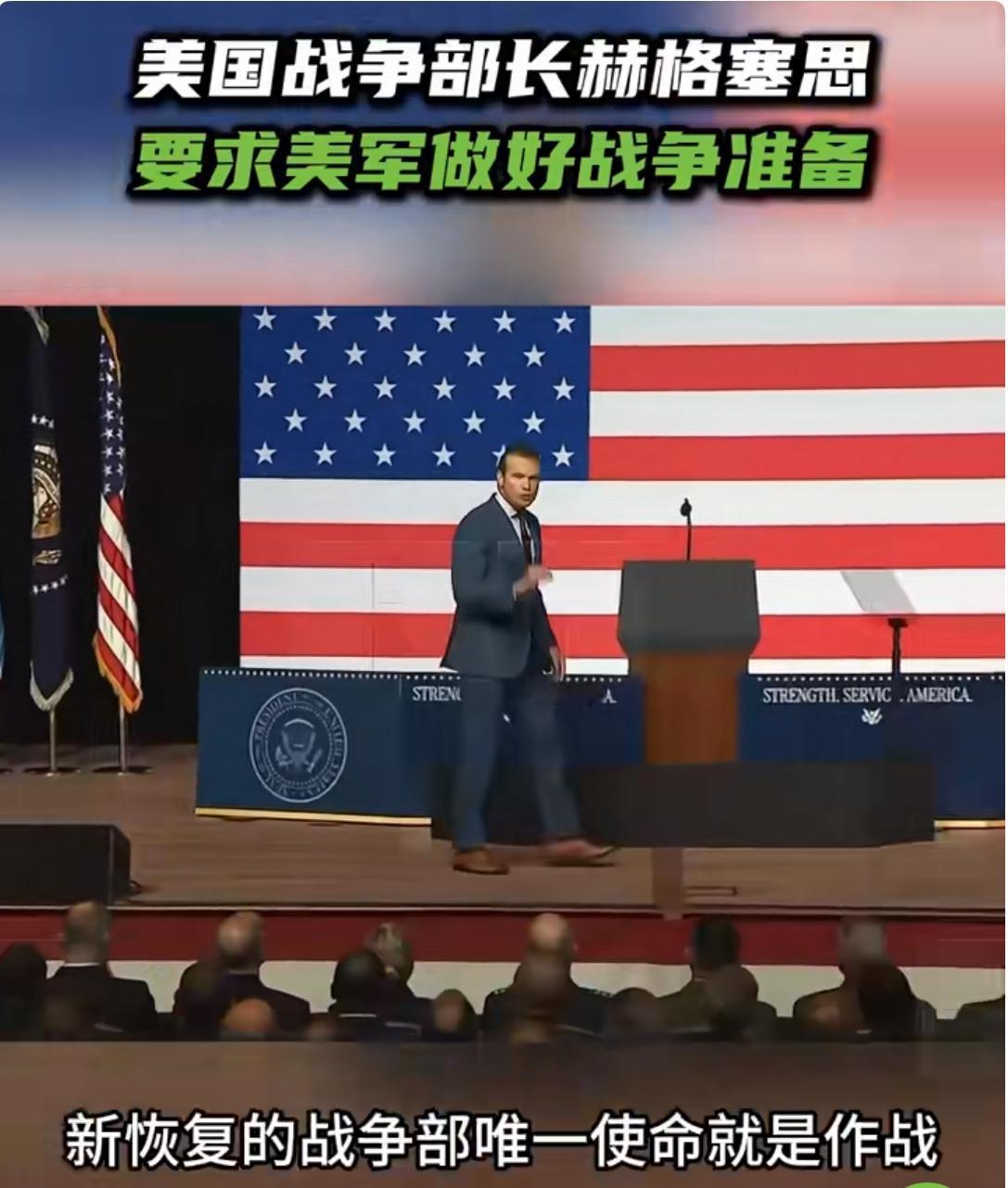 美国战争部长赫格塞思督促美军做好战争准备! 9月30日,美国战争部长赫格塞思在向美军军官发表讲话时特别强调,“要确保和平,我们就得做好战争准备。从现在起,新恢复的战争部唯一使命便是作战,为胜利而进行备战。这就是‘以实力求和平’”。 他还为此提出10项新指令,强调国防部要拥有“合适的人才”与“正确的文化”。 赫格塞思的这番言论,不免让人想起美国在国际事务中屡屡动用武力的过往。无论是海湾战争、阿富汗战争,还是当下的俄乌战争等,从美国历年来发动的多场战争可以看出,每次所谓的“为和平而战”背后,都潜藏着美国复杂的政治与经济利益纠葛。 倘若美国真如赫格塞思所言进入备战状态,极有可能引发新一轮的军备竞赛。 美国所谓的“和平”,不过是发动战争的借口罢了。