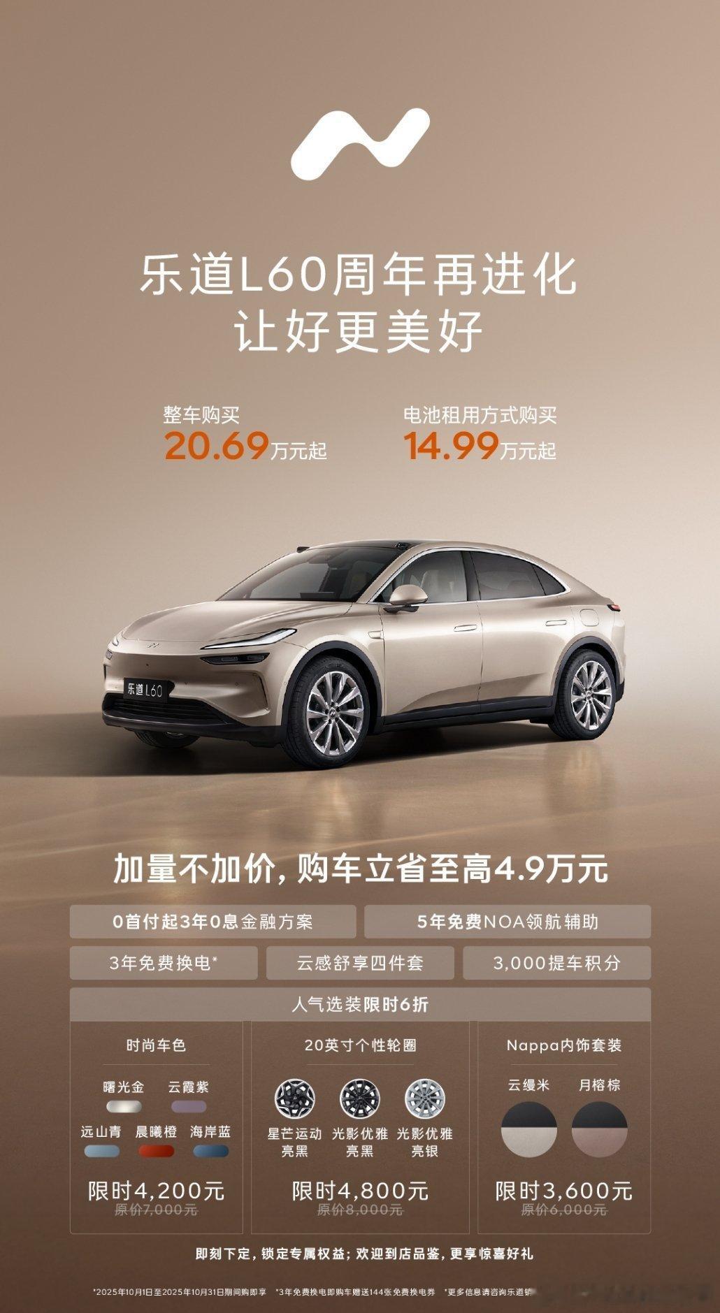 十月乐道L60的新购车政策来了,现在买都是加量不加价的新款了
