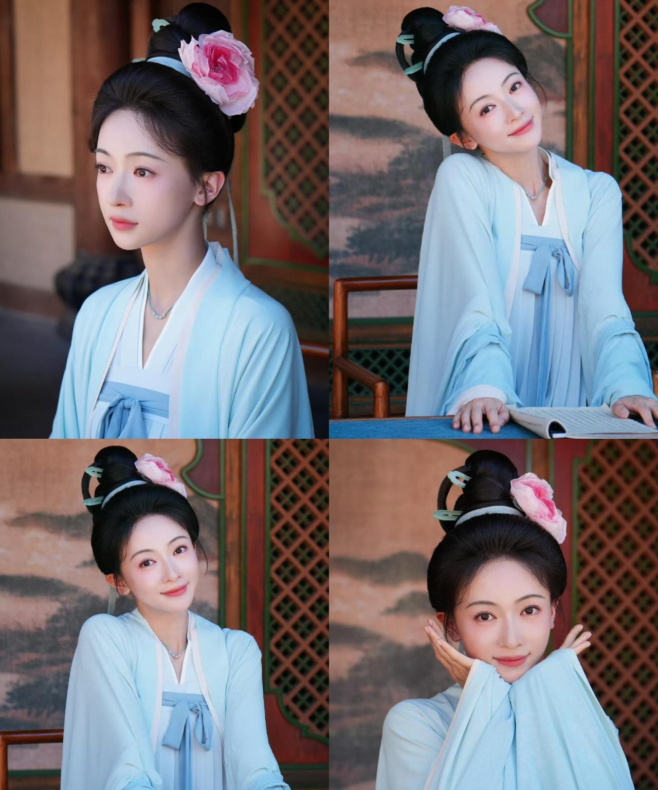 吴谨言新剧《江山为聘》的古装造型出来了! 她穿的那套湖水蓝衣服太绝了,看着素雅又