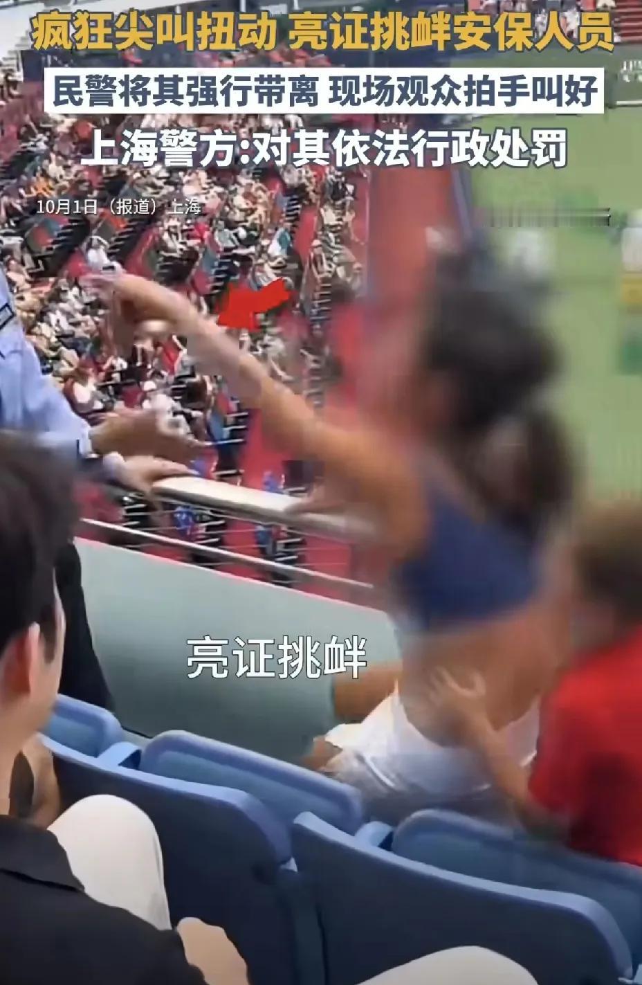 看比赛就老老实实的看比赛呗,搞不懂为啥要站起来要大吵大叫,真是一点素质都没有。旁边的孩子可能就才9岁吧,一个劲的拉他妈妈的袖子,让她坐下吧,别骂了,当妈的不仅没有收敛反而更来劲了,最后实在没办法,警察不得不把她抬离现场。 小孩子当时可能也是挺无语的,小小年纪就得在众目睽睽之下替当妈的收拾残局。这可能会成为孩子很久都抹不去的阴影吧。素质