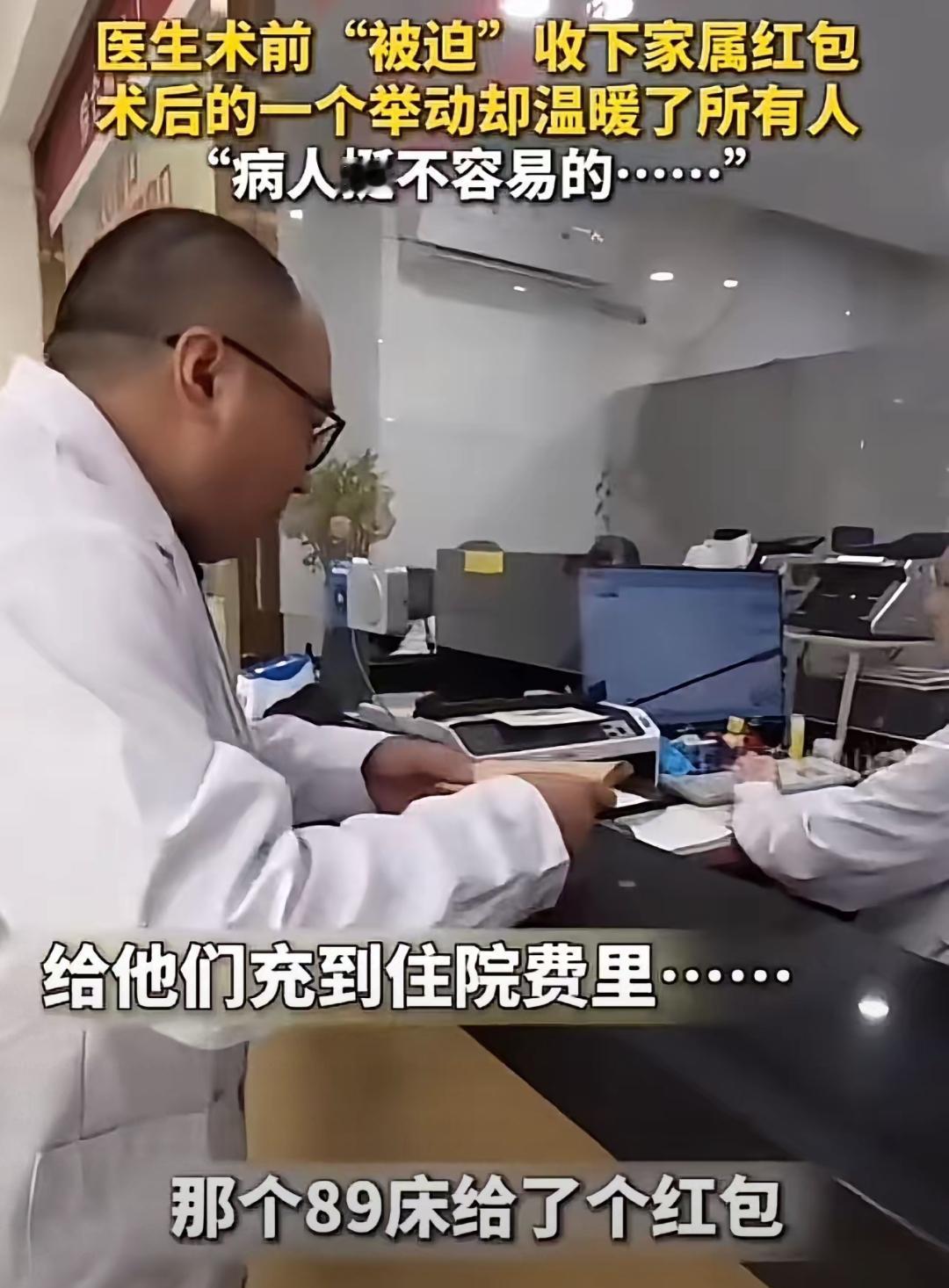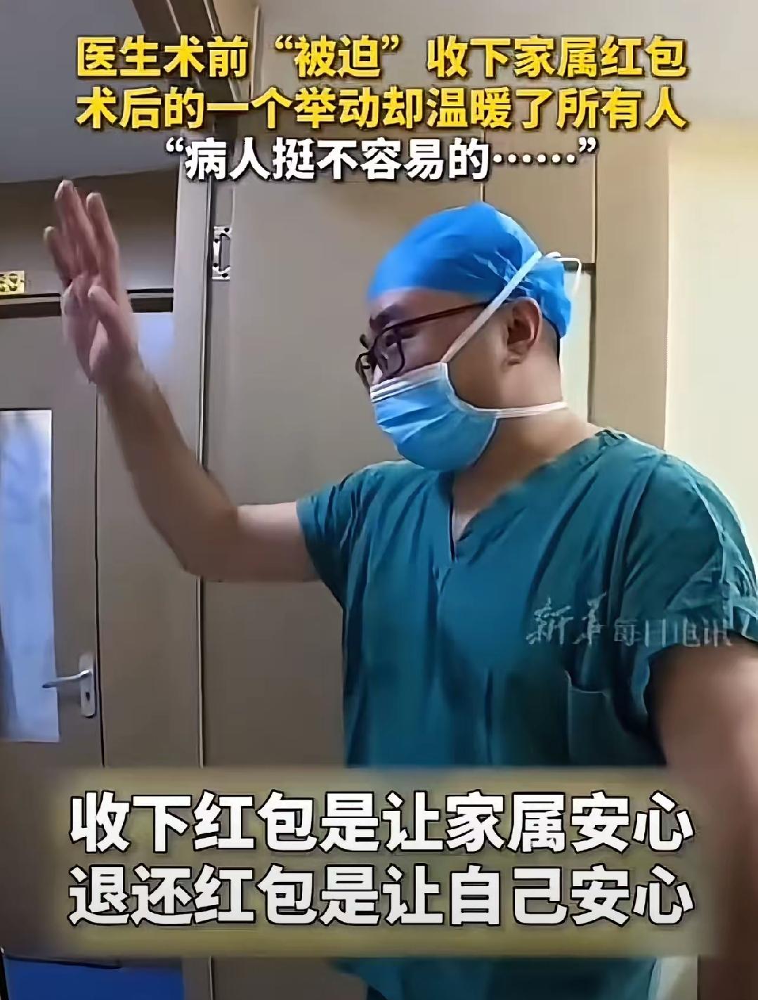 医生收红包后竟干出这事儿。。。 “这个医生火了!”北京朝阳医院赵会医生这事儿,真得好好唠唠。不少病人家属总觉得,不给医生塞红包,手术就难放心,这仿佛成了就医“潜规则”。 赵医生面对患者家属塞来的一万块红包,没当场拒绝,而是先让家属安心。可转头,他就把钱充进了患者住院费。在他心里,救死扶伤是医生的本分,患者生命健康永远是第一位的,哪能用金钱衡量尽心程度? 现在有些不良风气,把医患关系搞得变了味。赵医生用行动告诉我们,真正的医者仁心,是不被金钱诱惑,坚守职业道德。 大家身边是不是也有类似“送红包”的事儿?对这种不良风气,你有什么看法?快来评论区说说,一起聊聊怎么让医患关系更纯粹!手术收红包 大夫拒收红包 手术红包