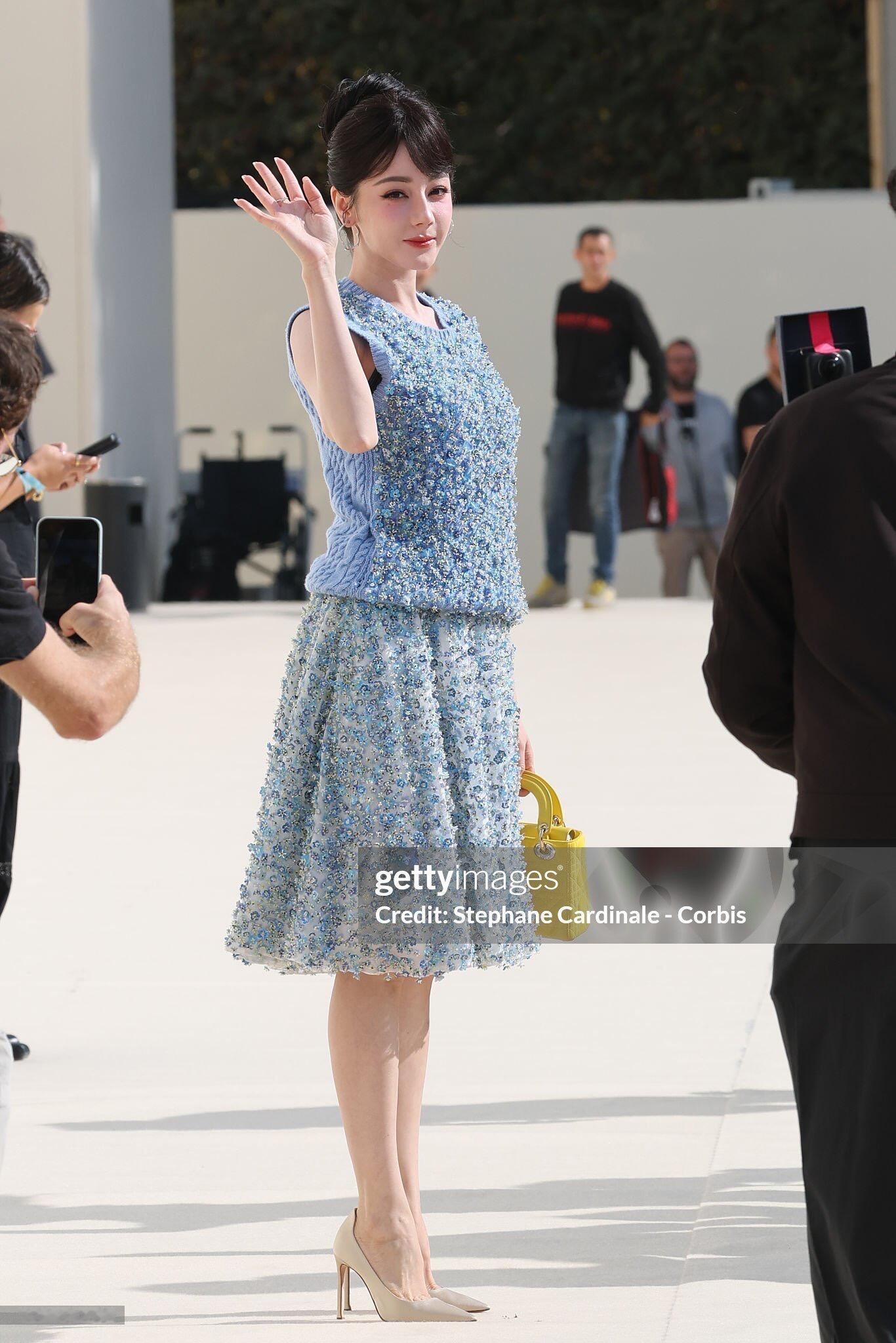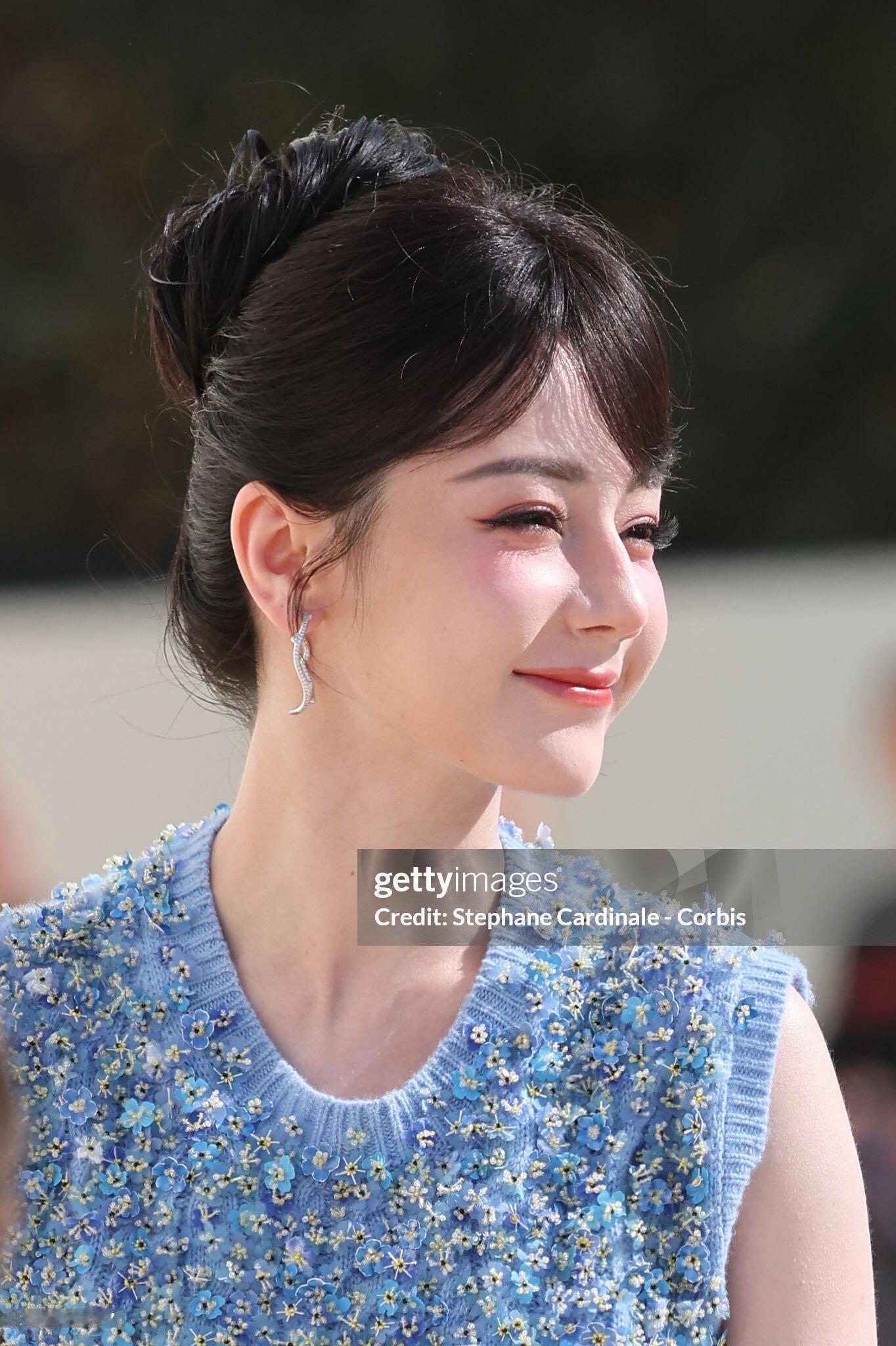 迪丽热巴作为全球品牌大使再度受邀出席巴黎时装周Dior大秀,身穿一件很重工的蓝色花朵刺绣针织上衣搭配碎花短裙,刘海、盘发,精致又优雅的法式公主!太美了!