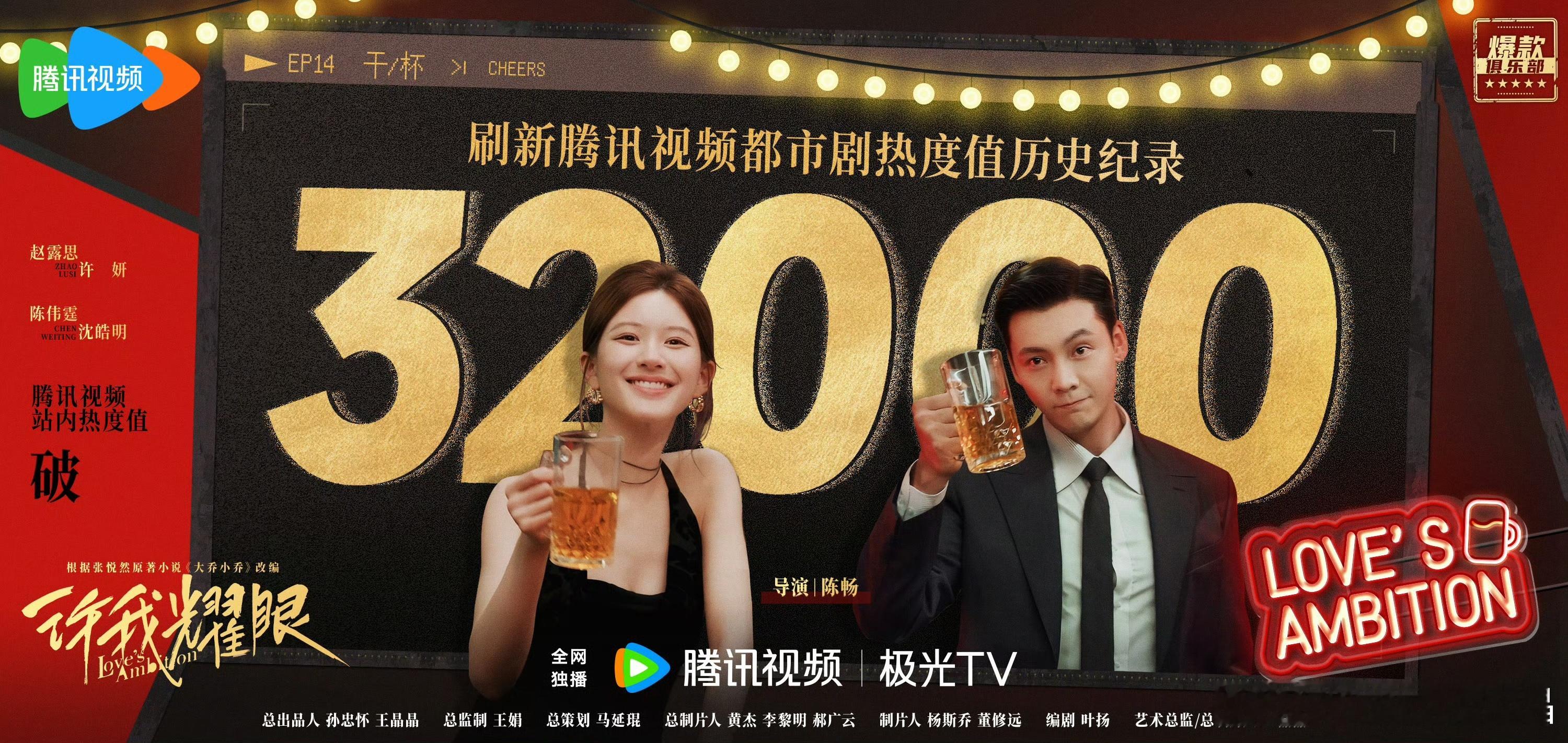 许我耀眼腾讯热度破32000 刷新腾讯视频都市剧热度值历史纪录,真就一路闪耀一路破纪录了,太厉害了[good]许我耀眼