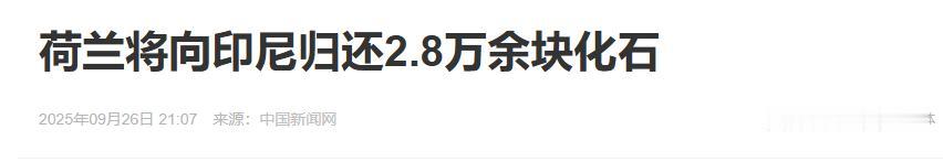 荷兰郑重宣布了!荷兰政府26日宣布,将把在殖民时期通过掠夺获取的2.8万余件化石收藏品,尽数归还印度尼西亚。 这事看着是文物交接,实质是给百年前的殖民掠夺补了一笔迟来的账。这些不是普通的石头,每一块都带着被抢走的印记,这次归还终于让它们能回到真正的家。 这批化石里藏着人类进化的密码,最金贵的是 1891 年发现的 “爪哇人” 头盖骨,还有配套的臼齿和股骨,这些都是直立人的遗骸,是人类祖先留下的直接证据。 当年这东西一出土就震动了世界,因为它第一次实打实证明了早期人类在亚洲的存在,对搞清楚咱们人类是怎么一步步演化来的至关重要。 更别说这两万八千多件化石攒了一百多年,涵盖了印尼多地的地质层,就像一套完整的 “地球记忆相册”,记录着那个地方几百万年的生物变迁。 可这些宝贝当年根本不是正大光明拿到荷兰的。19 世纪末,荷兰解剖学家杜波依斯打着 “科学考察” 的旗号跑到印尼,靠着殖民当局的武力支持,在爪哇岛到处挖。 当地居民知道这些地下的骨头是祖先的遗物,不愿意外人动,可在殖民统治下,他们的反对没用。 杜波依斯挖出来的化石,不管当地人事愿不愿意,直接用船运回国,塞进了荷兰莱顿自然生物多样性中心的仓库。 荷兰殖民藏品委员会后来查得很清楚,这些化石 “从未合法属于荷兰”,获取过程全是强制措施,说白了就是抢。 这种抢法在荷兰殖民印尼的三百年里太常见了。从荷兰东印度公司时期开始,他们不光抢香料、矿产,连文化遗产和自然标本也没放过。 1894 年在印尼龙目岛抢的 243 件文物,直到 1978 年才还回去,比这批化石还晚了几十年。 那些年里,印尼人想看自己土地上的化石,得飘洋过海去荷兰的博物馆,隔着玻璃看,心里肯定不是滋味。 这次归还不是荷兰突然良心发现,背后是几十年的努力和趋势推着走的。印尼在 2022 年正式提出要回这些化石,荷兰专门成立的殖民时期文物归还咨询委员会,查了史料、问了专家,最后明确说必须无条件还。 这背后有荷兰国内对殖民历史的反思,这些年他们办奴隶制展览,国王都停用了带殖民主义图像的黄金马车,越来越多人觉得不能再抱着抢来的东西当宝贝。 国际上的风气也变了,联合国早就定了公约,不让非法掠夺的文物留在外国,法国还了非洲文物,德国也还了贝宁青铜器,荷兰不还也说不过去。 更重要的是,这些化石在荷兰的价值远不如在印尼。在莱顿的博物馆里,它们只是众多藏品中的一部分,研究得再透,也离它们出土的土地太远。 回到印尼就不一样了,雅加达国家博物馆早就为它们留好了位置,当地的科学家能结合本土的地质环境研究,说不定能解开之前搞不懂的人类进化谜题。 印尼文化部长说这是 “修复文化遗产链条”,这话实在,这些化石本来就是印尼历史的一部分,缺了它们,那段历史就是断的。 不过也得说清楚,这事儿不值得给荷兰太多称赞。就像有人偷了东西,过了一百年才还回来,不能夸他 “善良”,因为他本来就不该偷。 荷兰当年在印尼犯下的错远不止抢化石,奴隶贸易、武力镇压,这些账不是还一批化石就能清的。 而且荷兰国内还有近一半人反对为殖民历史道歉,说明他们的反思还没做到底。之前荷兰首相为奴隶制道歉,只给了基金没提赔偿,被苏里南的媒体骂不够谦逊,这次归还化石也是一个道理,只是开始,不是结束。 看看国际上的例子,埃及一直要大英博物馆还罗塞塔石碑,希腊要回帕特农神庙雕塑也说了几十年,这些被抢的文物回家之路都难。 荷兰这次能痛痛快快还了 2.8 万件,给其他殖民国家立了个样子,那些还抱着抢来的文物不放的国家,没法再用 “历史悠久”“保管更好” 当借口了。文物和化石不是谁抢到手就是谁的,它们的根在哪,就该回哪去。 这批化石很快就要踏上归途了,荷印两国会一起做好运输和修复,之后还会合作研究。对印尼人来说,这不仅是拿回了一批科研资料,更是找回了被偷走的尊严。 对荷兰人来说,这是正视历史的一步,比抱着殖民时期的 “战利品” 沾沾自喜强得多。 对我们所有人来说,这事儿提醒大家,不管过多少年,做错的事总要纠正,公平和正义可能会迟到,但不能缺席。 未来肯定还有更多殖民时期的文物要回家,这个过程可能慢,但方向是对的。 那些曾经的殖民国家该明白,真正的文明不是靠抢别人的宝贝撑起来的,而是敢承认错误、弥补过错。这批 2.8 万件的化石,就是最实在的证明。
