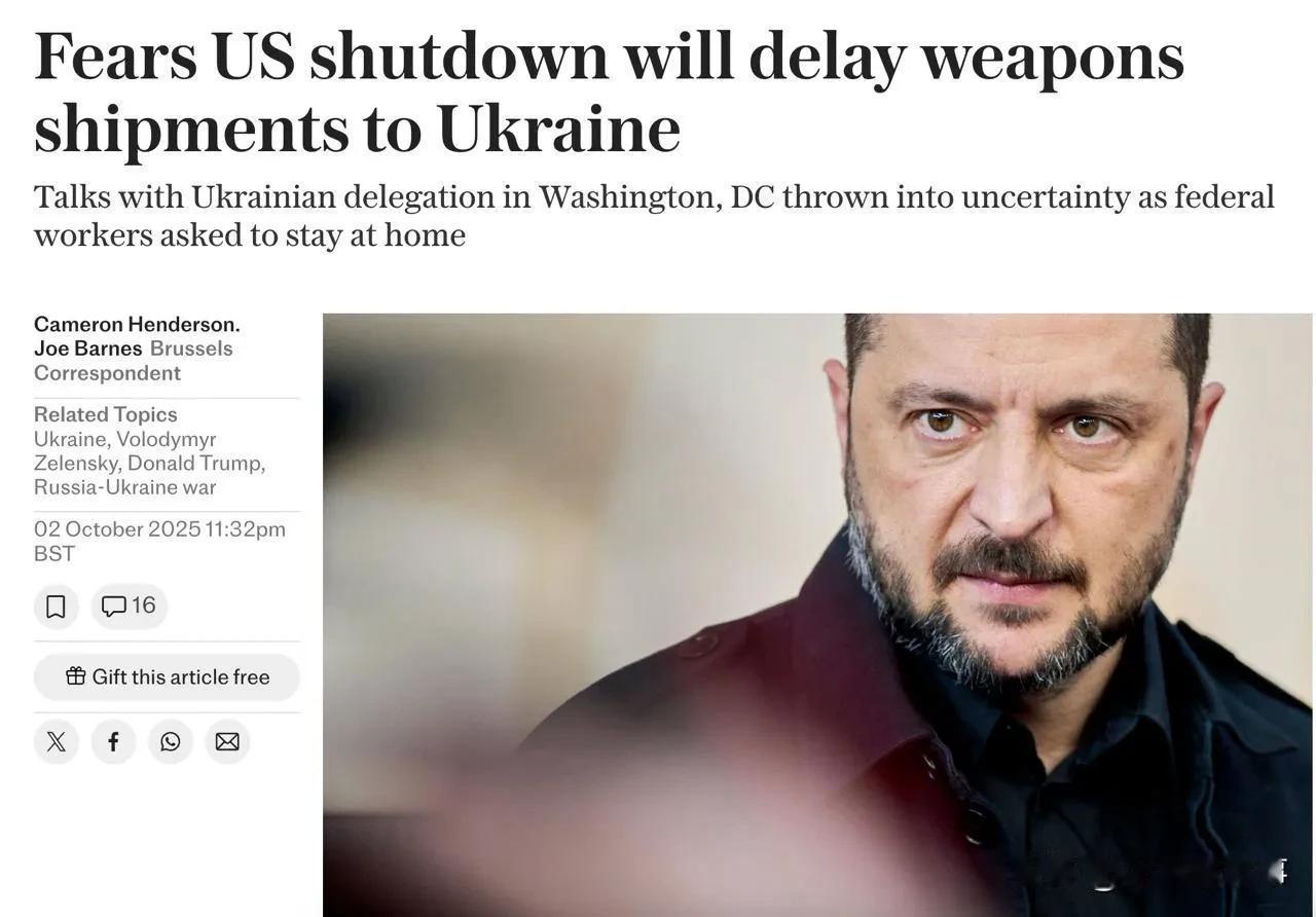 🇺🇸🇺🇦据英国《每日电讯报》援引乌克兰政府消息人士称,10月1日美国政府关门后,该国对乌克兰的武器供应将被延迟。 未来的所有项目也可能“受到一些影响”。其中包括价值数十亿美元的无人机协议。 由于“政府工作人员被送回家”,美乌之间关于无人机协议的谈判“陷入不确定状态”。 乌克兰代表团原计划在未来几周内前往美国,与美国代表就不同议题举行会谈。现在他们正调整未来几周的计划。 美援乌武器