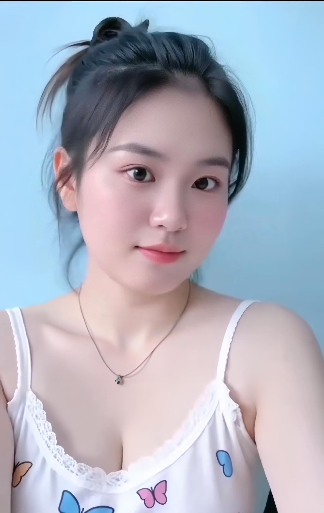 打油诗·娇俏的姑娘 彩蝶满衣衬素妆, 青丝半绾俏模样。 浅蓝墙前风情漾, 娇俏姑