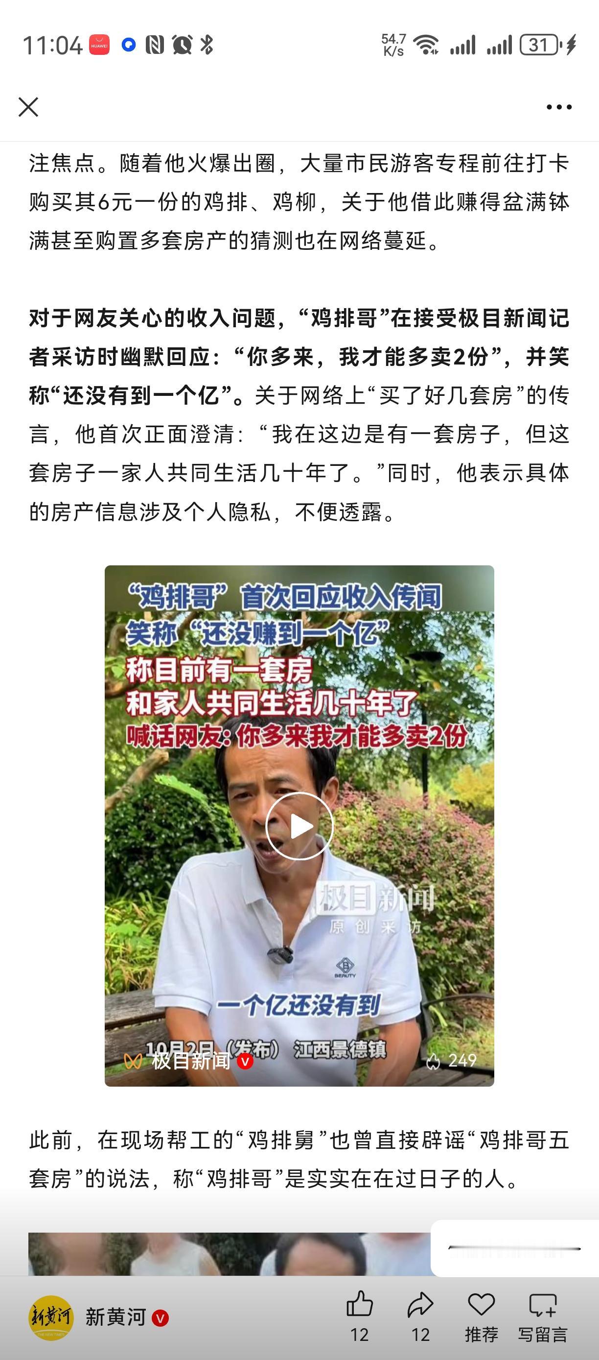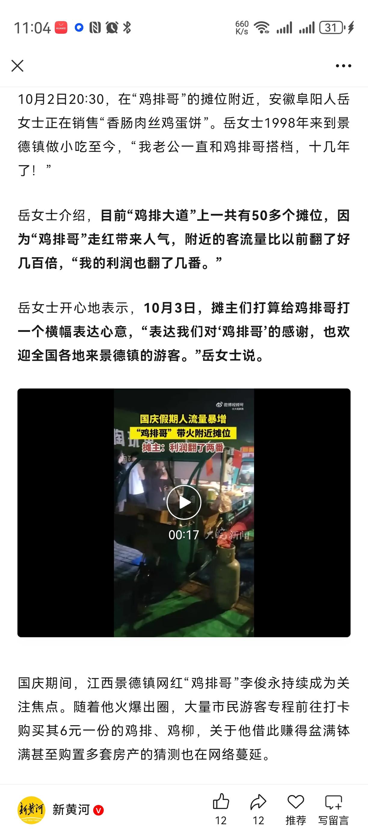 一个网红带动一个产业 鸡排哥, 网红 一举成名, 政府邀请他, 家族成员指望鸡排哥 他, 周围商圈因此获利满满。 他马上就要直播带货开公司, 天上掉下来的馅饼哦鸡排达人 这个泼天富贵必须得接住, 一下子带领家人翻身做主人, 搞的好还可以弄个政协委员企业家玩一玩[呲牙][呲牙][呲牙]