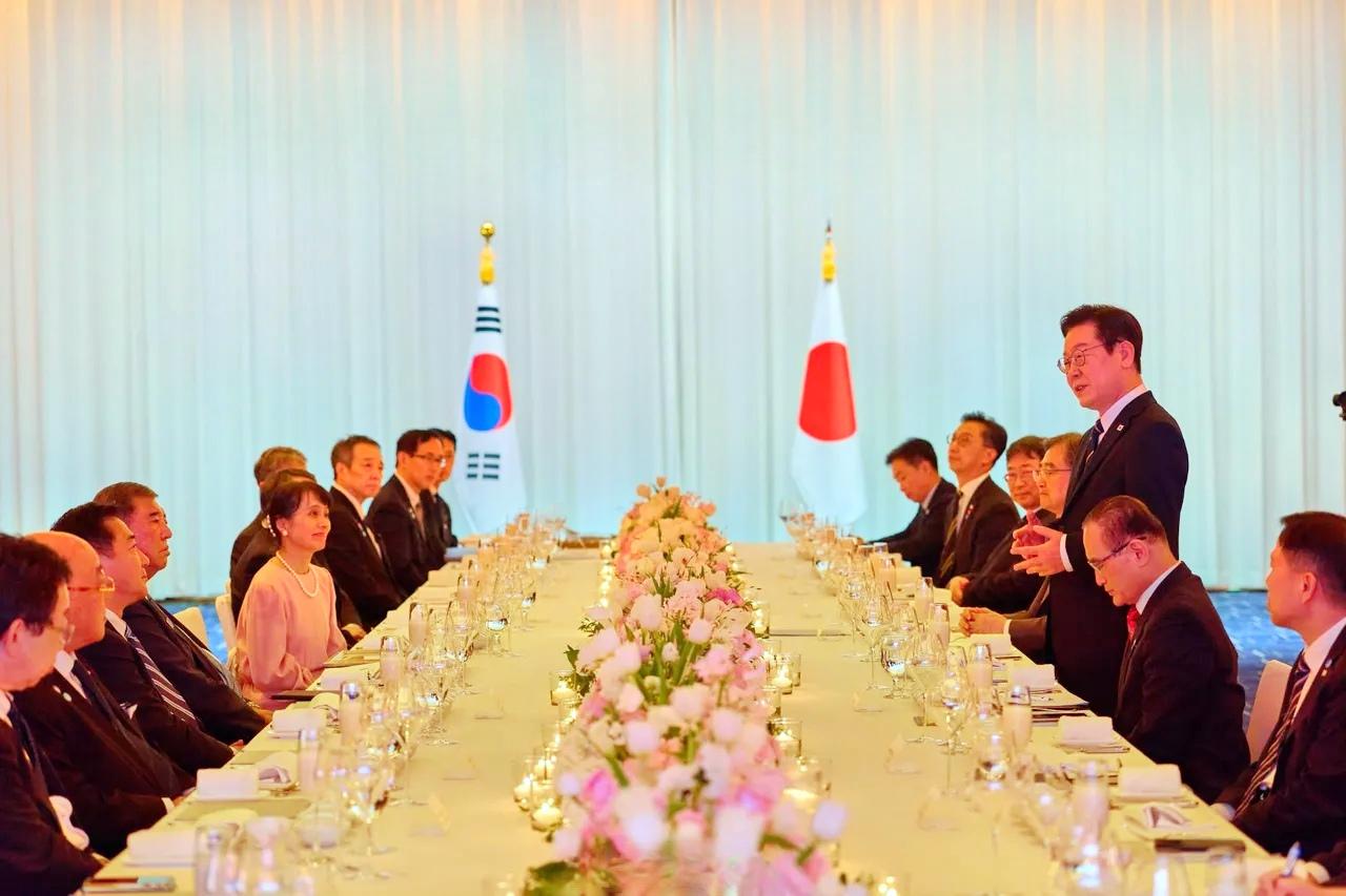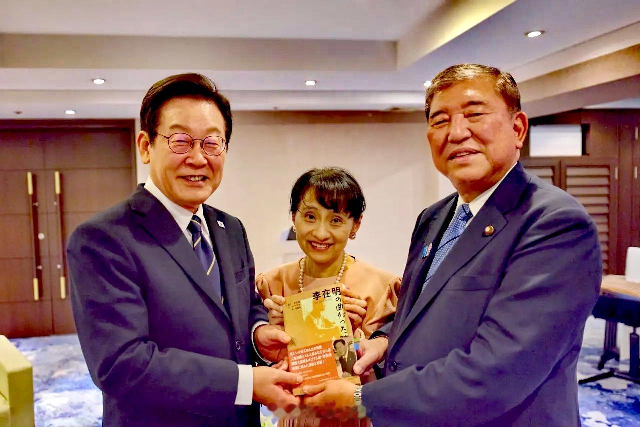 石破茂的这位夫人挺有意思—— 石破茂赶在卸任首相前,趁着还可以公费旅游,带着夫人一同出访韩国。 说到石破茂这位夫人,此番出行的表现好像挺不一般。按说陪同家属一般是躲在丈夫身后陪笑就行,可石破茂夫人却走到哪都冲在石破茂前面,而且还自顾自与李在明聊的甚欢,完全把石破茂晾在了一边。 照片中,不知道李在明是不是在介绍有关美容整形的话题,可把石破茂夫人羡慕坏了,整个像少女思春的眼神看着李在明。一旁的石破茂一脸严肃,且涨得通红,内心估计有好多匹马在奔腾。 大家不是经常说岛国女人挺内敛吗?怎么感觉石破茂夫人不太像呢?对此,友友们怎么看?欢迎在评论区分享交流。