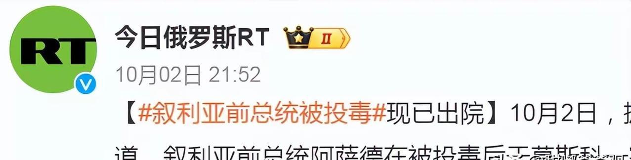 难怪巴沙尔毫无音讯,原来遭人投毒暗杀,抢救11天刚刚出院! 据“今日俄罗斯”援引叙利亚人权观察组织消息披露,9月22日,俄罗斯莫斯科郊区某高度保密医院内,巴沙尔体内检出不明毒素,剧烈咳嗽、胸闷与神经系统紊乱,一度生命垂危。经十余天的全力抢救后,阿萨德本人已于10月2日出院。 据悉,最耐人寻味的是探视名单:其弟马赫尔·阿萨德被明确禁止进入病房;而前总统府秘书长曼苏尔·阿扎姆却获准探视。反映出阿萨德家族内部正在分裂。 甜嘟爸爸想说,第二次听说巴沙尔遭投毒。在俄罗斯的保护下,这是不可想象的。 阿萨德都下台了,也挺不容易的,西方国家真损,都下台了,让阿萨德安度晚年吧,也为叙利亚人民做不少贡献,也是个硬汉子,为了保护国家,跟以士烈打了好多年,祝愿阿萨德全家平平安安。 从古至今这样的总统太少了,一生不得安宁,为什么不拼一下,成者为王败者为寇。伸头一刀,缩头还是一刀,还不如痛快地抵抗一仗! 无论任何一个国家,如果内奸不清除干净,他的国家永远得不到安全保障。 政治需要的永远是莫名其妙的发生,有时候会沦为棋子。亡国之主,可衣食无忧,却安危不保,好不悲催,已不如一介平民矣!