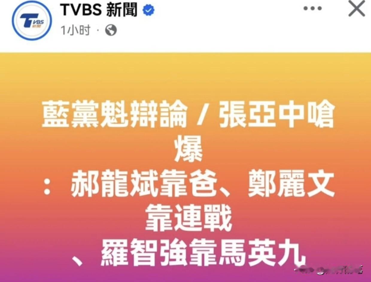 感觉张亚中是在破釜沉舟就此一博了,在辩论中对郝龙斌、郑丽文与罗志强的批评,其实不仅仅是不惜破坏与他们本人的关系,还得罪了他们背后的忠实支持者。要知道国民党在岛内也就三十多万党员,而郝龙斌、郑丽文与罗志强三个的支持者加起来可能都已经占了一大半国民党成员了,再加上卓伯源和蔡志弘也占了一部分的支持者,能够给张亚中投票支持的国民党员其实真的非常有限了。张亚中这么严厉的对内部批评,苦口婆心要改革国民党,唯一的作用就是看能不能够打动国民党内比较偏中立的党员给他投票了。
