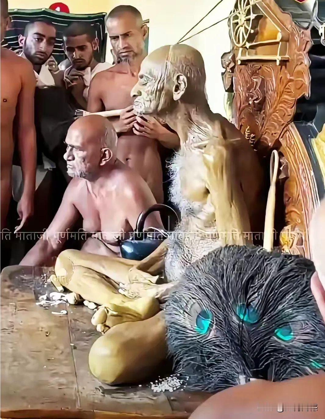 印度高僧圆寂后,徒弟们陪伴左右,看得出来,这个圆寂的僧人,年纪应该是比较大的了,最少也得超过80岁了,圆寂后仍然保持坐的姿势。头部被用绳子固定住了,否则的话容易倒下来,这些徒弟坐在师父身旁,脸上并没有表现出痛苦的样子,也没有一丝一毫的恐惧,也许这些人通过修行之后,对生命有了更深层次的认识!