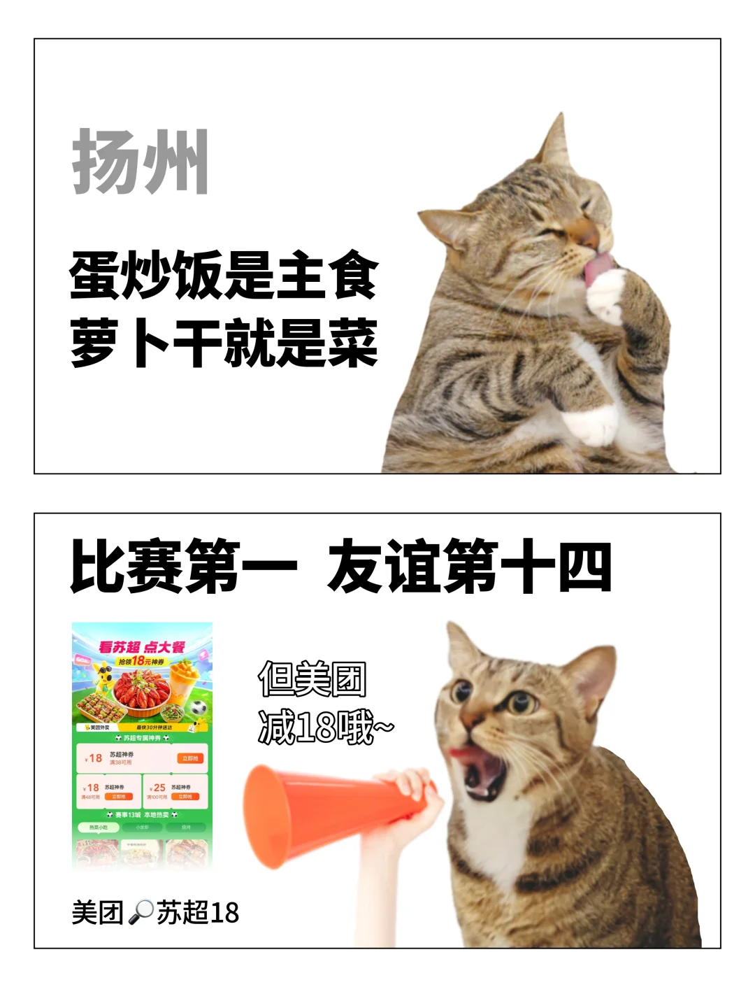 虽然比赛第一,友谊第十四,但是美团减18!每个苏超比赛日,在江苏 上美团🔍【苏超18】,就能领取专属18元券啦~