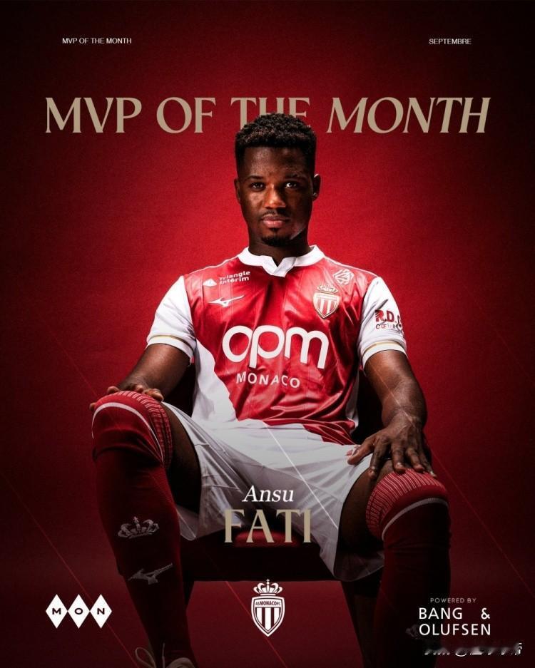 真的是人挪活了,法蒂当选摩纳哥9月最佳球员! 刚刚法甲球队摩纳哥官方宣布,法蒂