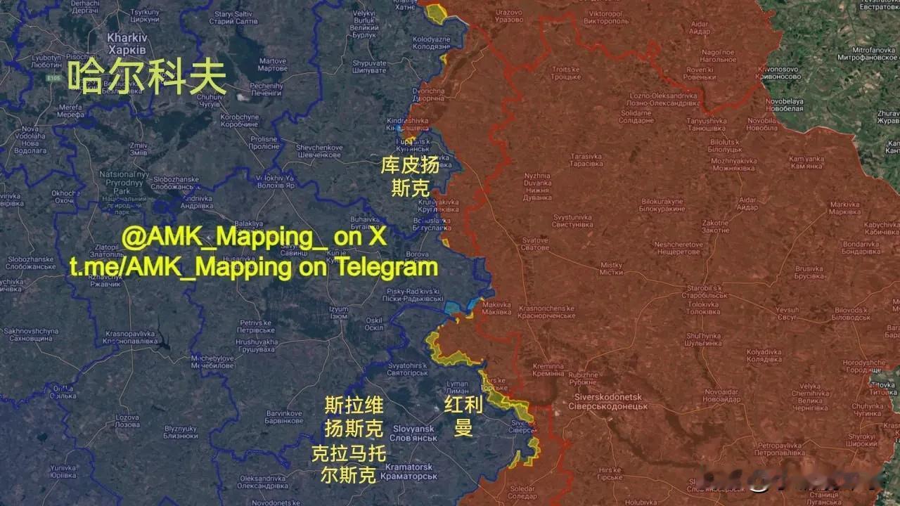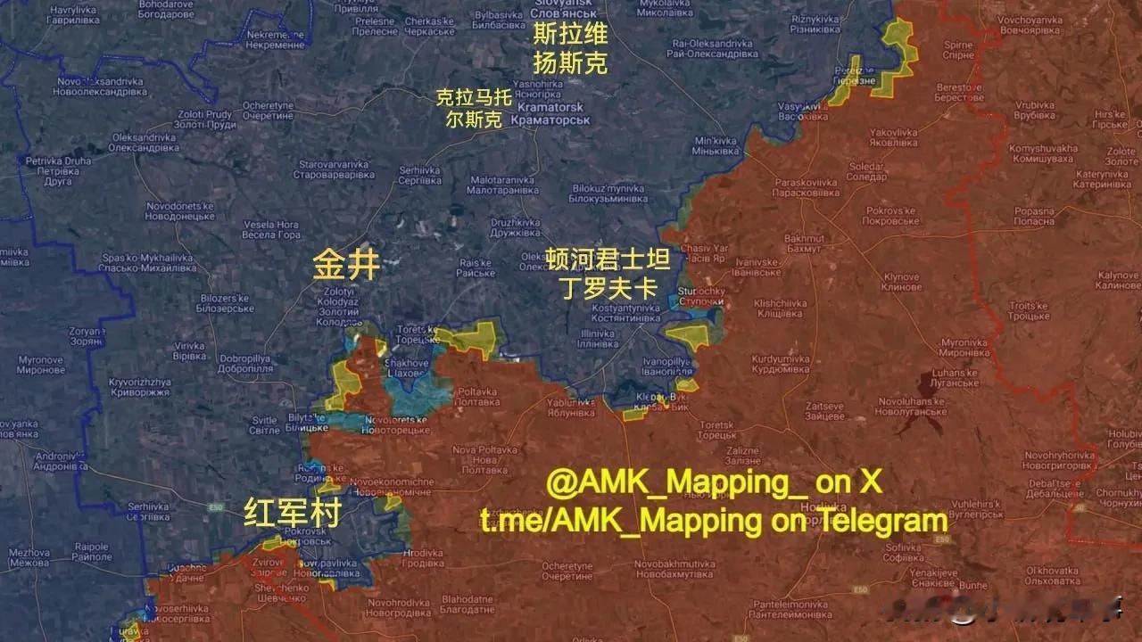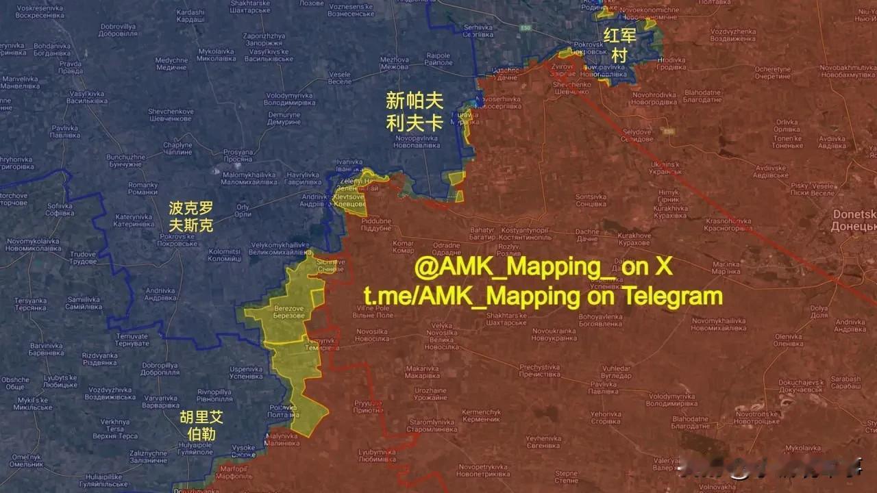 2025年9月俄乌前线变化: 黄色=俄军进展 浅蓝色=乌军进展 俄军