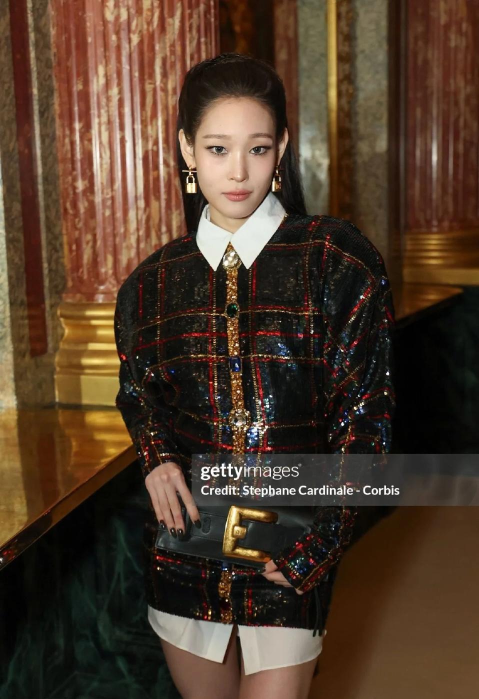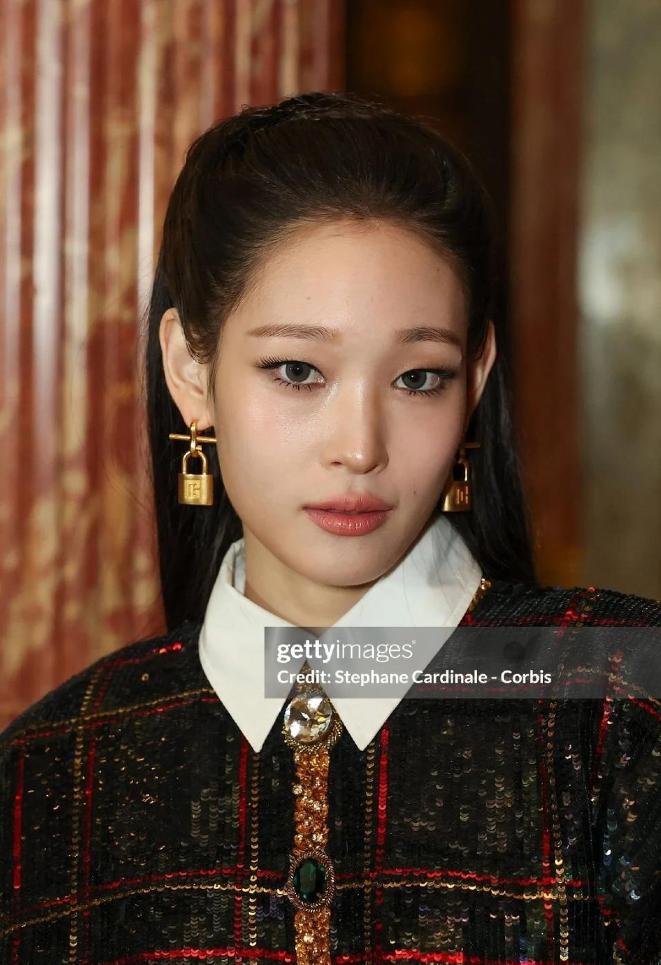 她没上班,但全球品牌排队给她送衣服。 Balmain借她一副锁形耳环,当天就开快