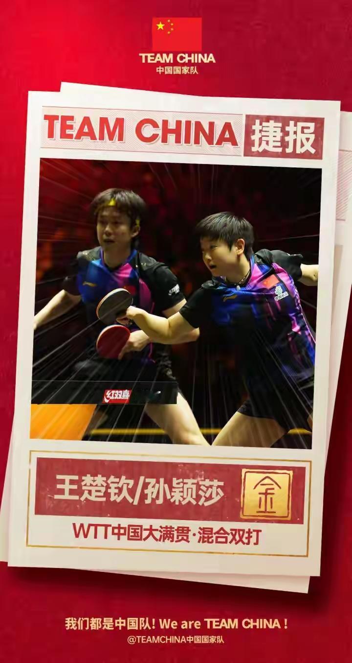 王楚钦/孙颖莎强势夺冠 北京时间10月3日晚,2025WTT中国大满贯赛迎来混双决赛的巅峰对决。世界排名第一的"莎头组合"王楚钦/孙颖莎以压倒性优势3-0(11-8、11-9、11-9)战胜新生代组合黄友政/陈熠,成功摘得这项顶级赛事的混双桂冠。 作为中国首次举办的WTT最高级别赛事,本届大满贯吸引了全球顶尖选手参与。决赛中,王楚钦/孙颖莎展现出超强的赛场统治力,三局比赛均以关键分制胜。首局在8平后连得3分奠定胜势,后两局更是在9平的关键时刻展现大心脏,连续用高质量的前三板压制对手取胜。 这场胜利对"莎头组合"意义非凡:不仅收获2000个世界排名积分,更延续了他们在国际赛场的不败神话。赛后技术统计显示,王楚钦的反手拧拉得分率高达72%,孙颖莎的台内控制更是让对手难以找到突破点。而首次闯入大满贯决赛的00后组合黄友政/陈熠虽败犹荣,其凶狠的搏杀打法给冠军组合制造了不小麻烦。 值得一提的是,这项赛事去年首度举办时的混双冠军由林诗栋/蒯曼获得。本次国乒两代选手的决赛交锋,既展现了队伍的人才厚度,也预示着巴黎奥运周期后中国混双项目的顺利传承。随着颁奖仪式上五星红旗的升起,中国乒乓球队再次用实力证明了自己在世界乒坛的领先地位。 赛场硬核王楚钦 王楚钦巴黎冲金