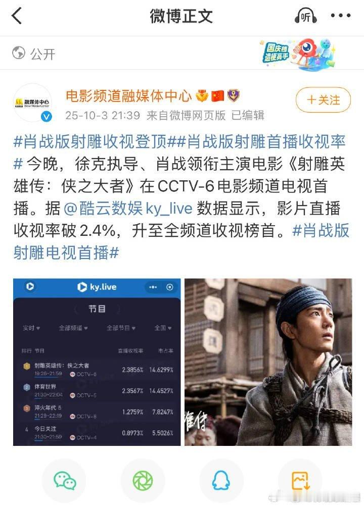 肖战射雕英雄传实时收视率破2六公主甚至从25年开始,只发了肖战射雕的收视率战报