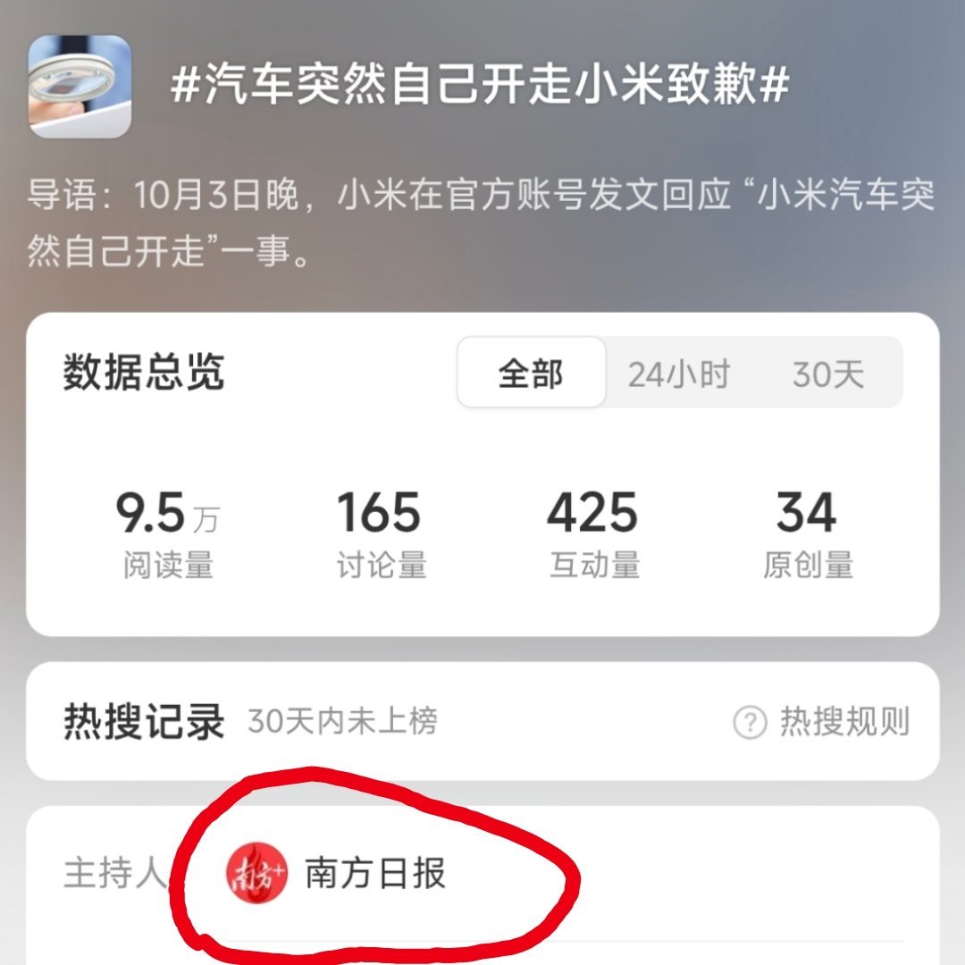 [二哈][二哈][二哈]艹,话题还可以这么编,大家点一下举报。汽车突然自己开走小米致歉