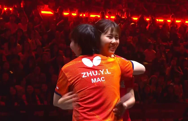 比赛结束同同和朱雨玲拥抱了两次,第一次是同同赢下最后一分,两个走在了一起,先握手,在就是热聊,朱雨玲主动拥抱了同同。第二次是两个人跟对方的主教练握手完回来,走到了球场上遇到了,又聊了起来,拥抱了一起,场面太温馨,太美好了。两个人在球场上打的火药味十足,拼的很精彩。两个人之前都是国家队的,一个批次的,就相差了两岁,私下关系很好。